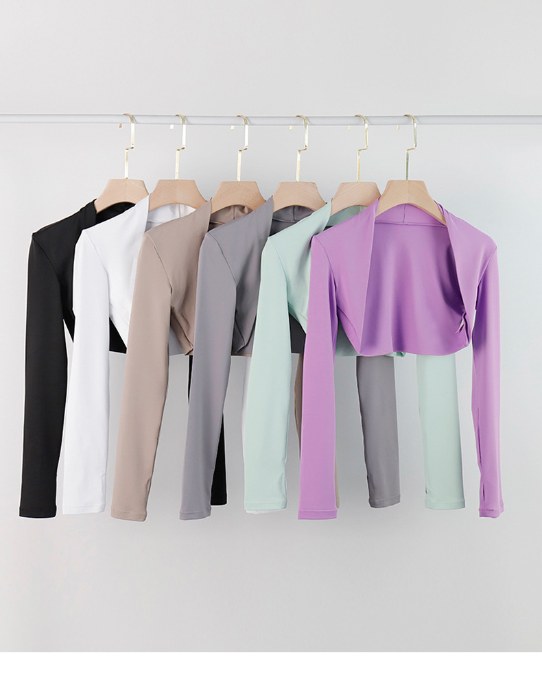 여름 새로운 요가 조끼 재킷 긴 소매 카디건 선 스크린 재킷 짧은 스포츠 목도리 여성