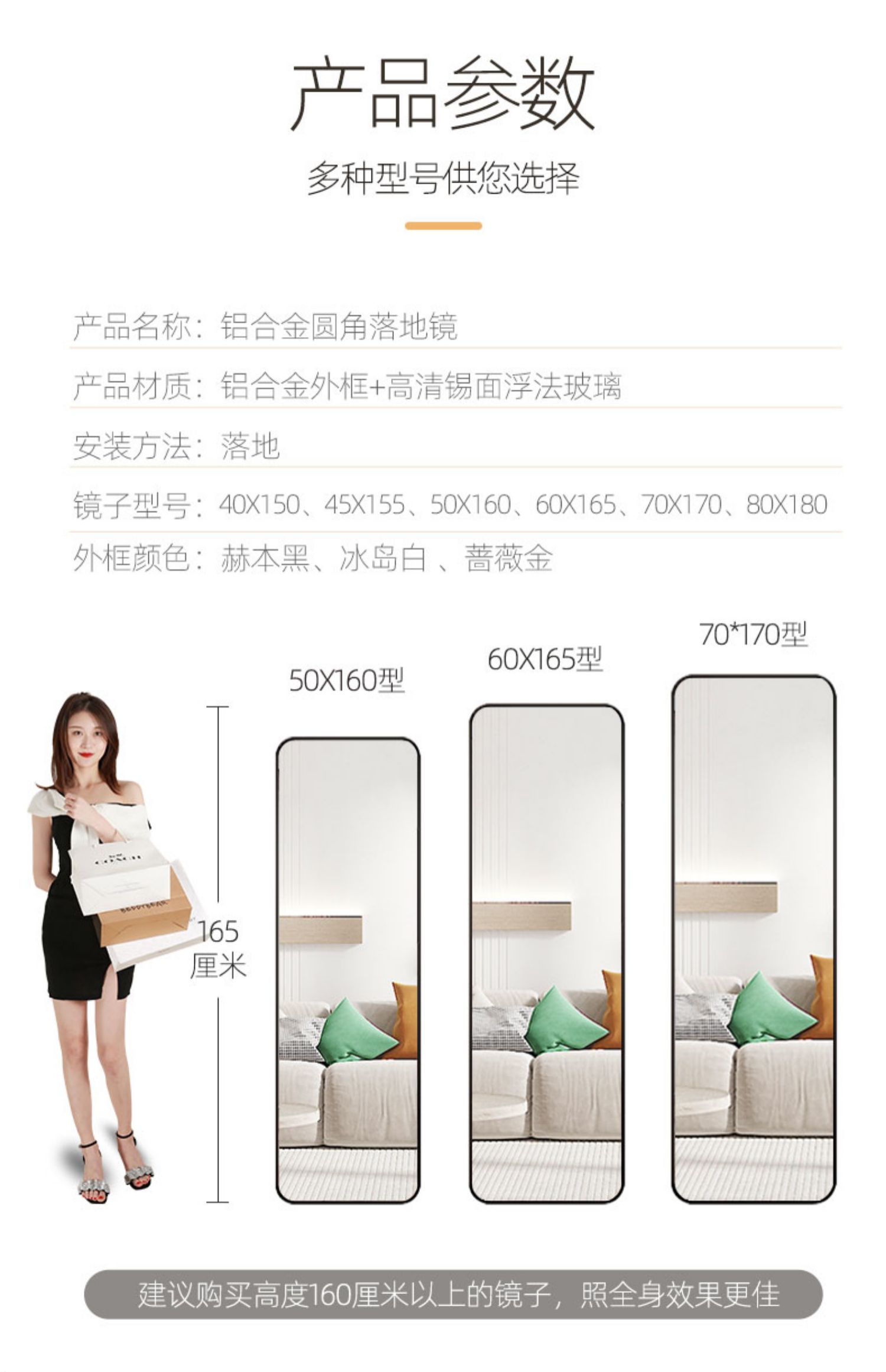 • 170*70 로즈 골드 플로어 미러 + 슬리밍