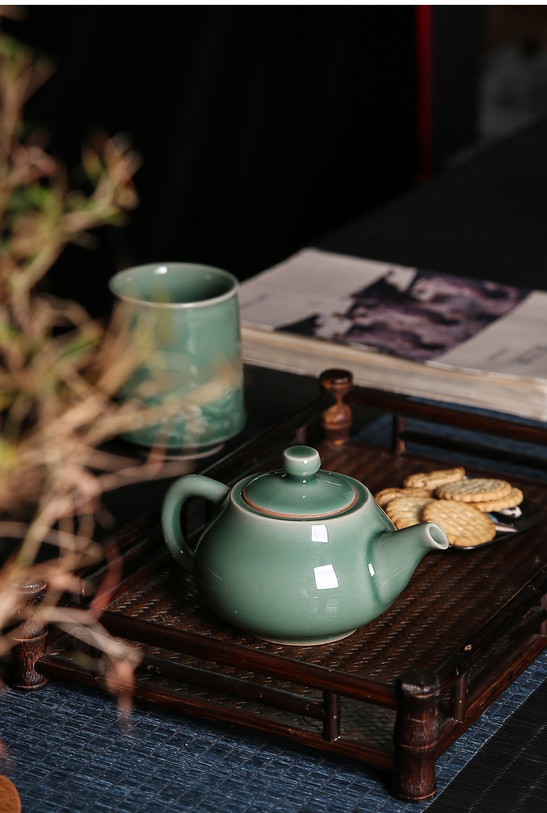 Zhuofang 현대 중국 고급 매화 녹색 도자기 주전자 세라믹 대용량 단일 냄비 가정용 쿵푸 냄비 담그는 주전자스토어 가기