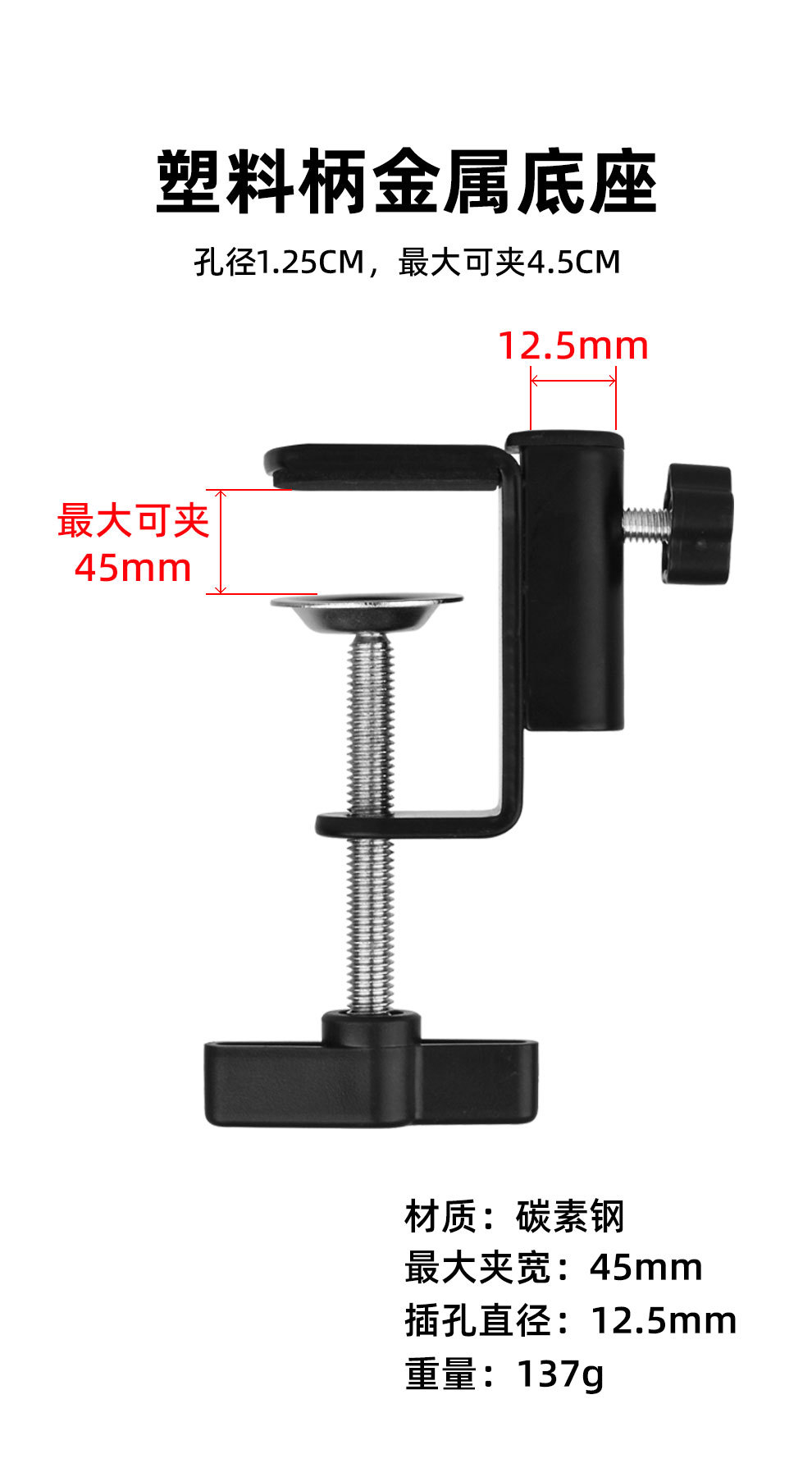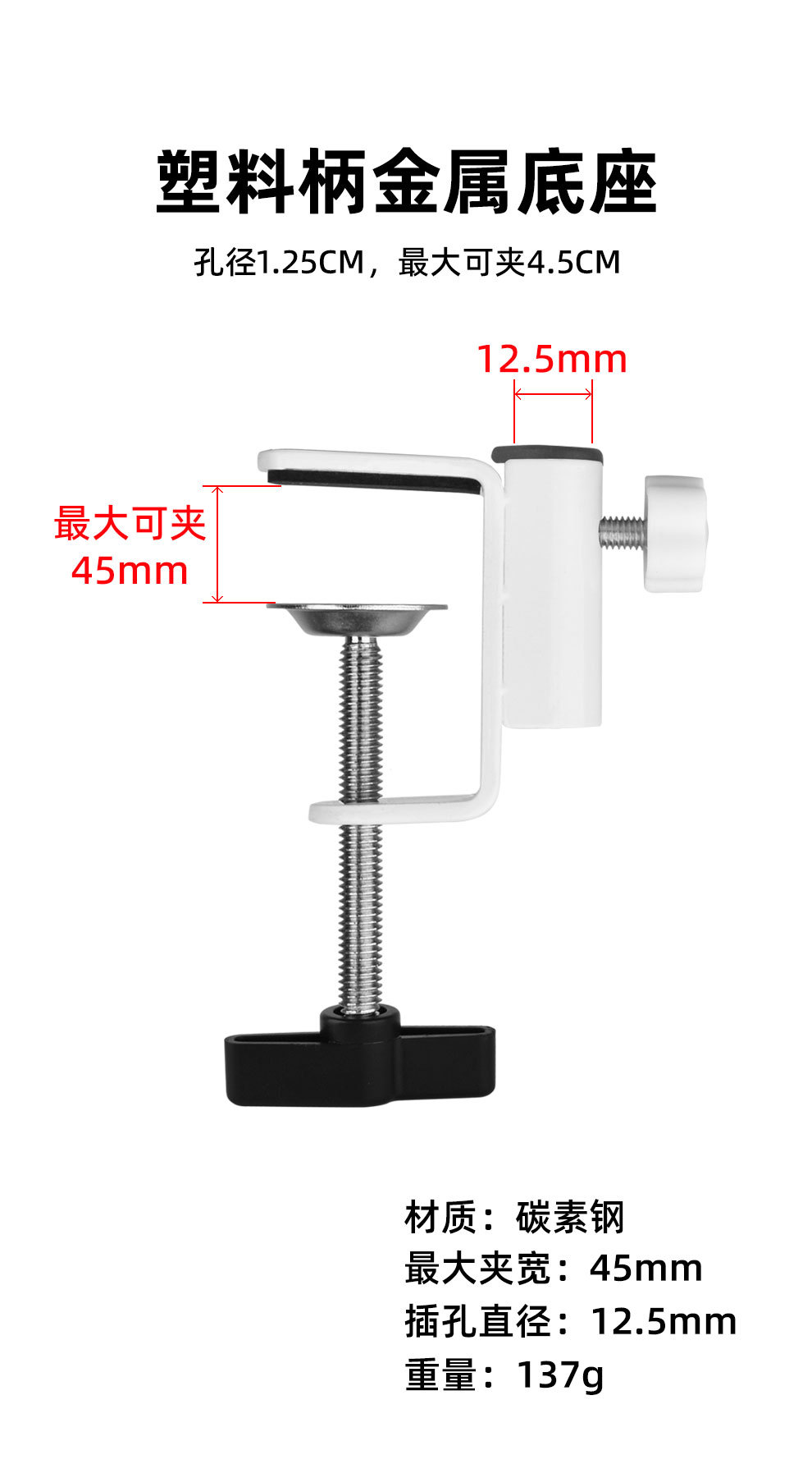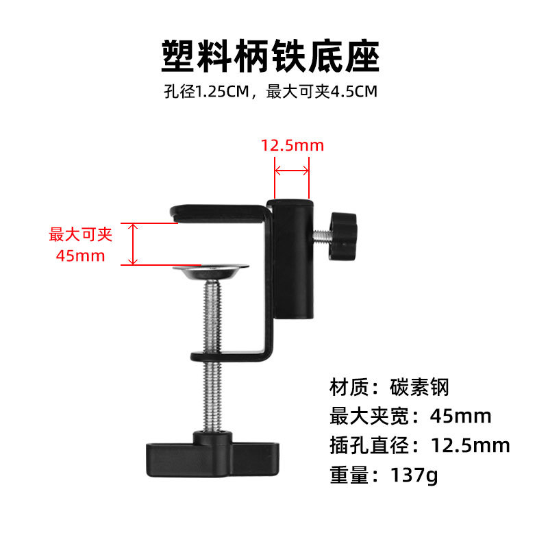데스크탑 고정 휴대 전화 클립 캔틸레버 브래킷 플라스틱 핸들 철제베이스 침대 옆 탁자 램프 I-클립 브래킷 제조 업체