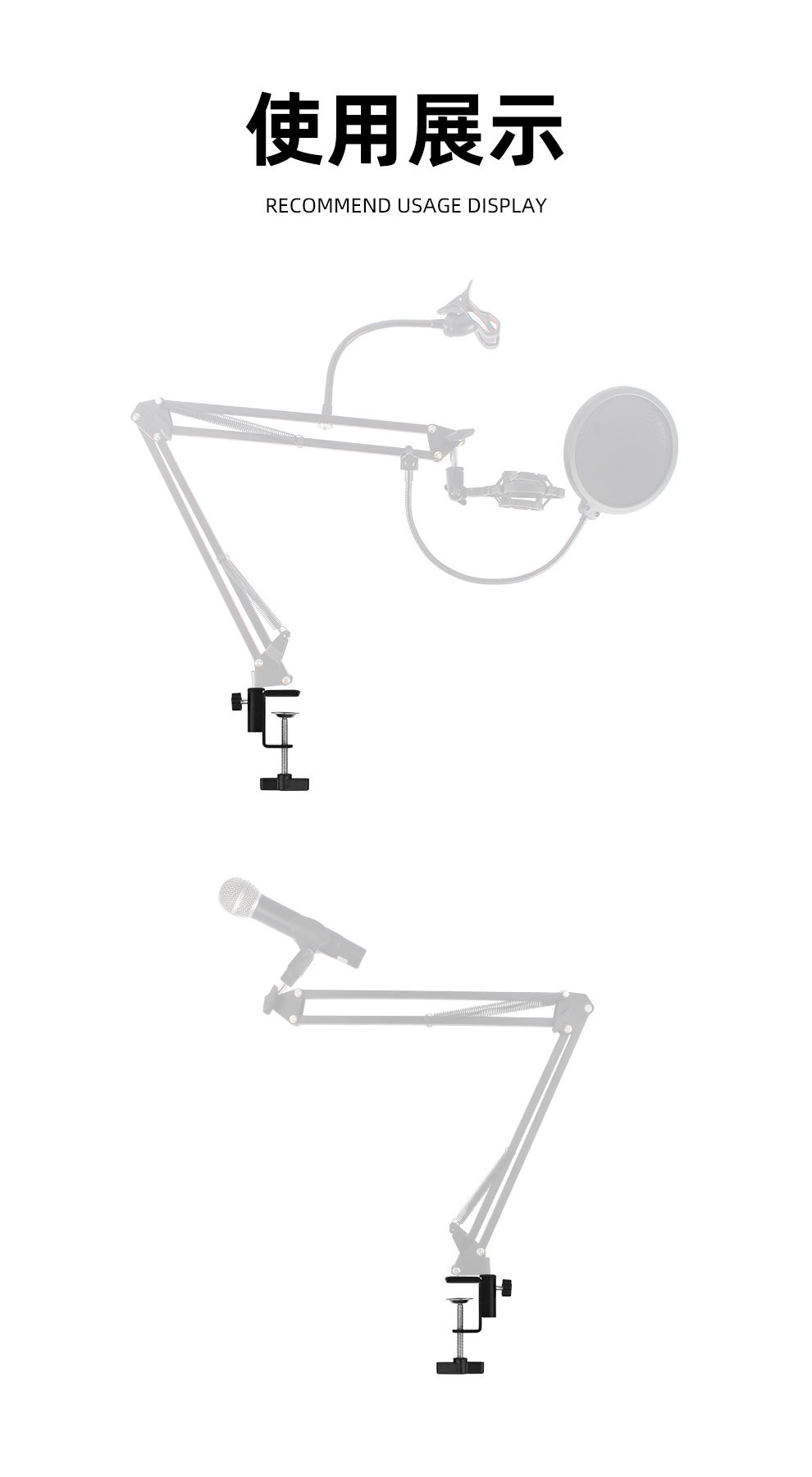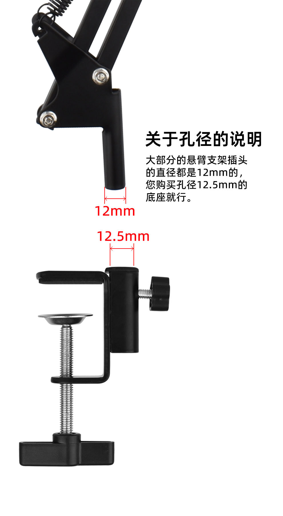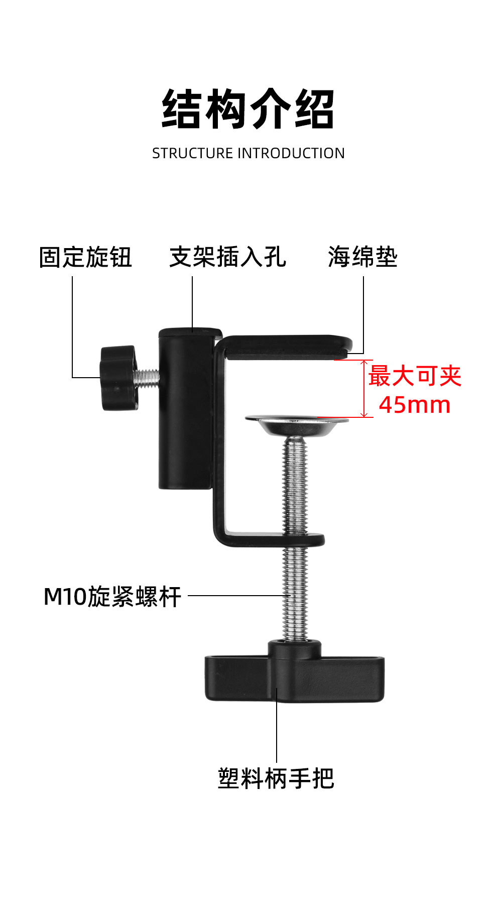 데스크탑 고정 휴대 전화 클립 캔틸레버 브래킷 플라스틱 핸들 철제베이스 침대 옆 탁자 램프 I-클립 브래킷 제조 업체