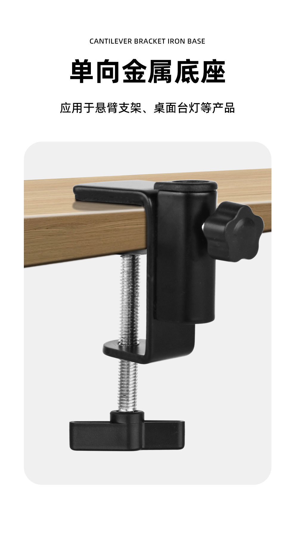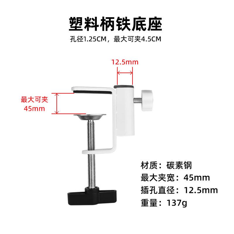 데스크탑 고정 휴대 전화 클립 캔틸레버 브래킷 플라스틱 핸들 철제베이스 침대 옆 탁자 램프 I-클립 브래킷 제조 업체스토어 가기