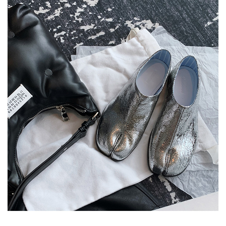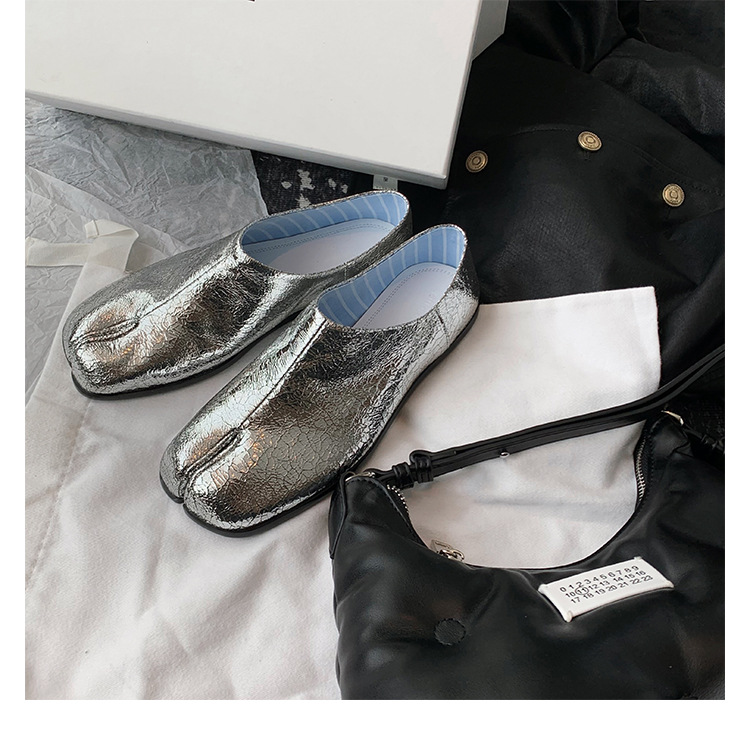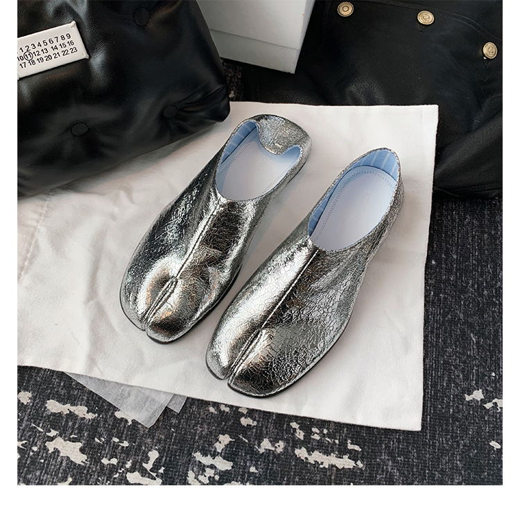 여성용 포도색 돼지족발 스플릿 토 슈즈 2025 여름 신상 실버 말굽 슈즈, 슬립온 플랫 슈즈스토어 가기
