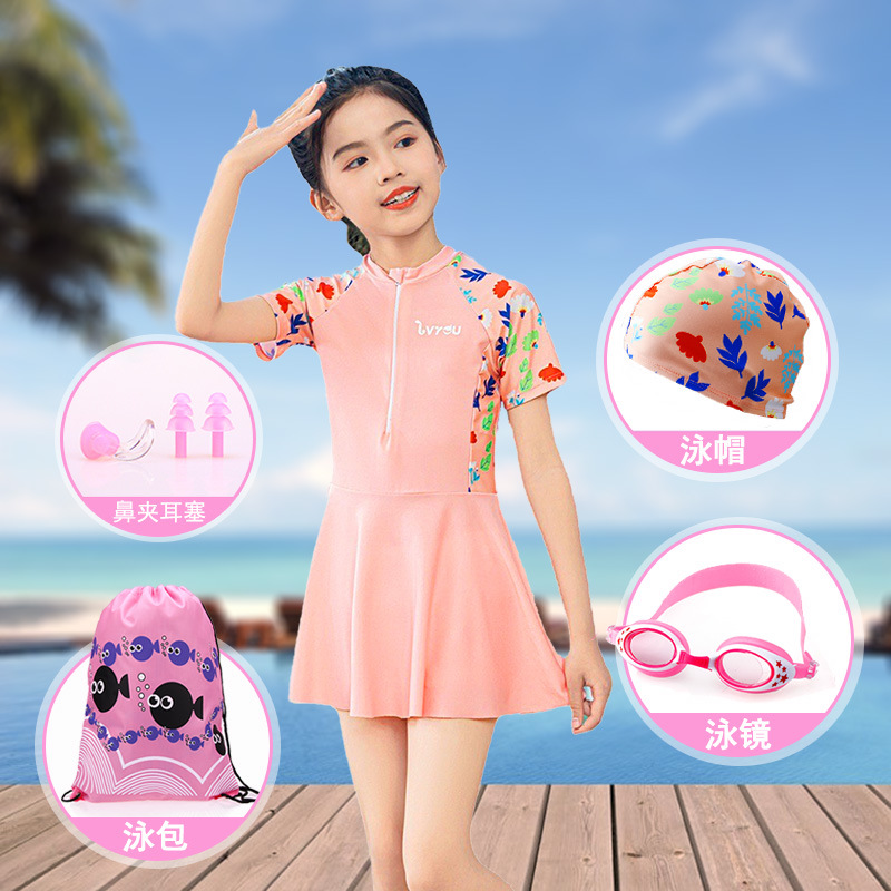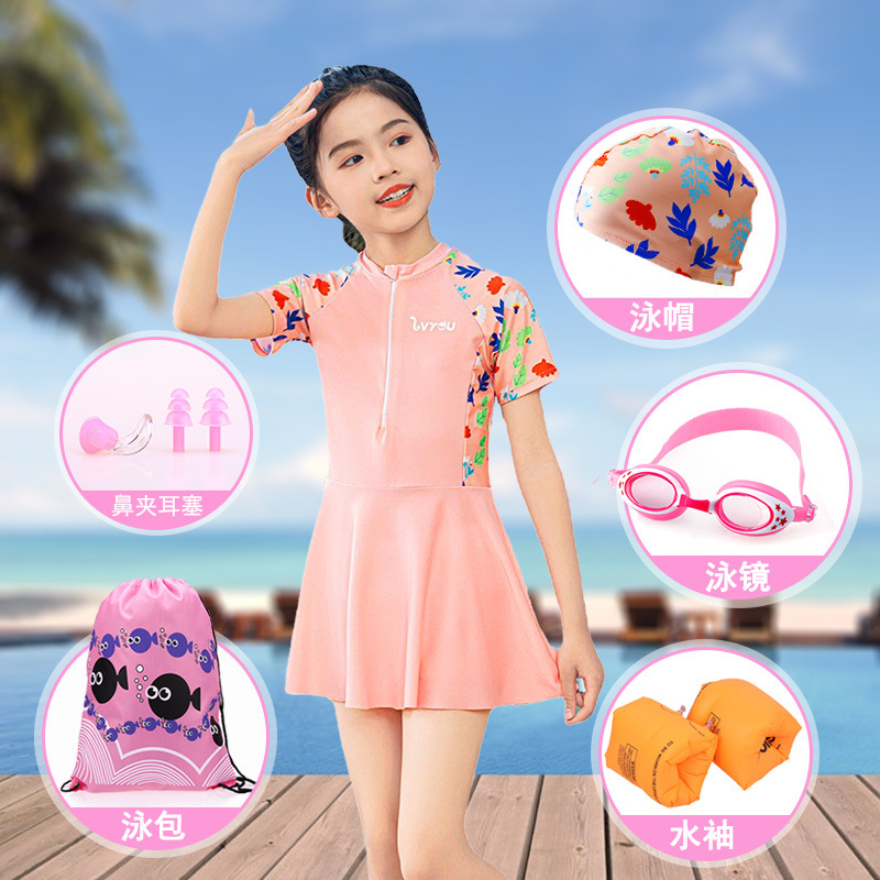 어린이 수영복 여아 원피스 스커트 한국 큰 아이 아기 스플릿 복서 보수적 인 여아 학생 수영복스토어 가기