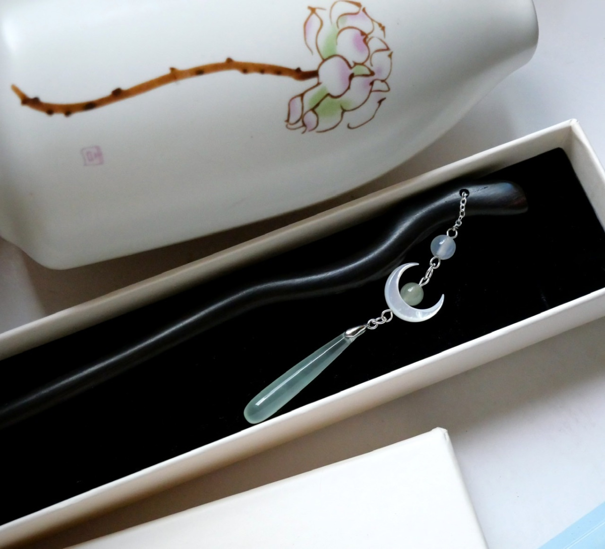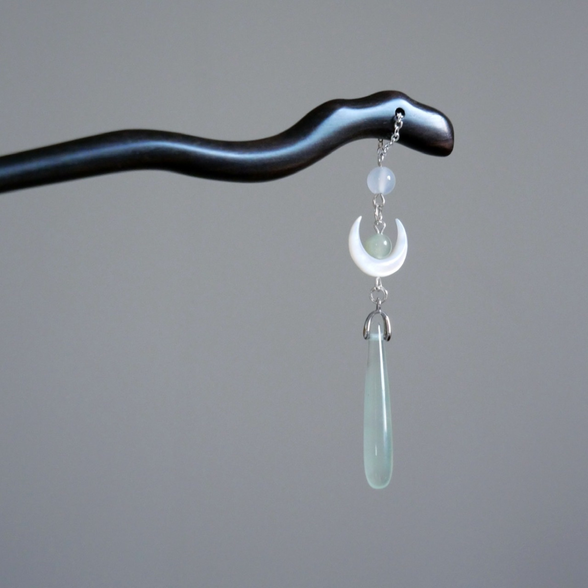 • 달 떠오르는 바다 모조 백단향 머리핀-바다 녹색