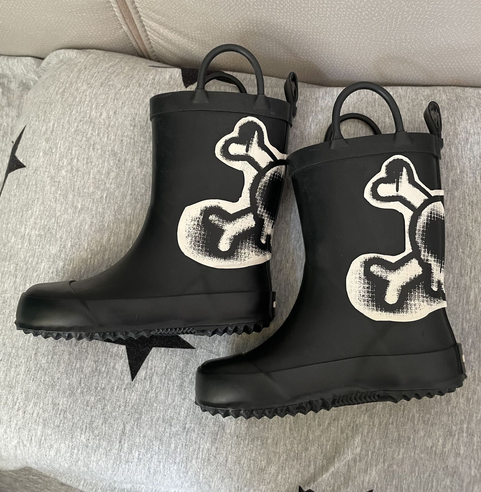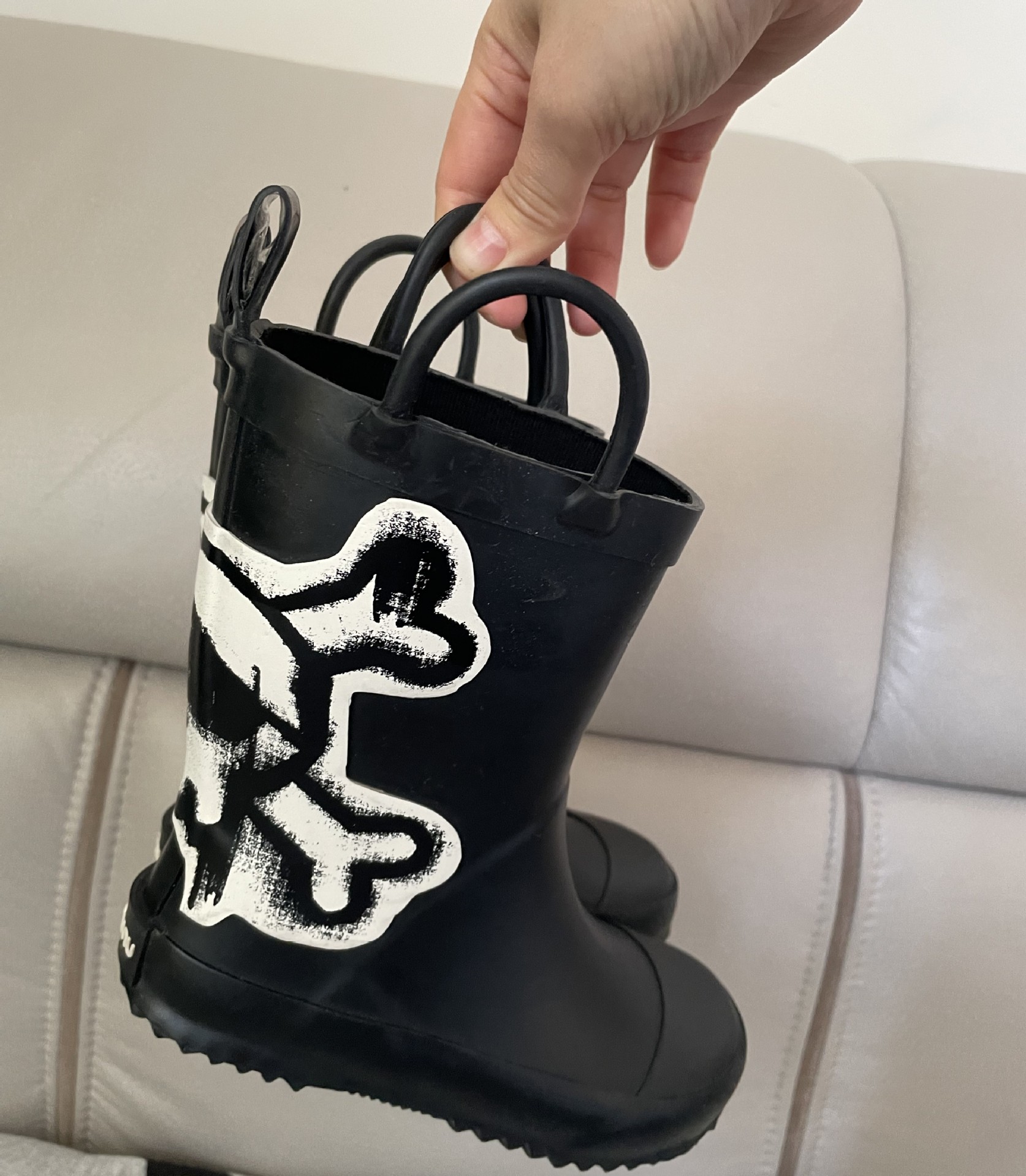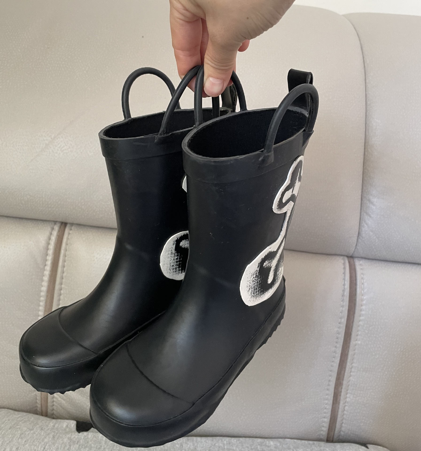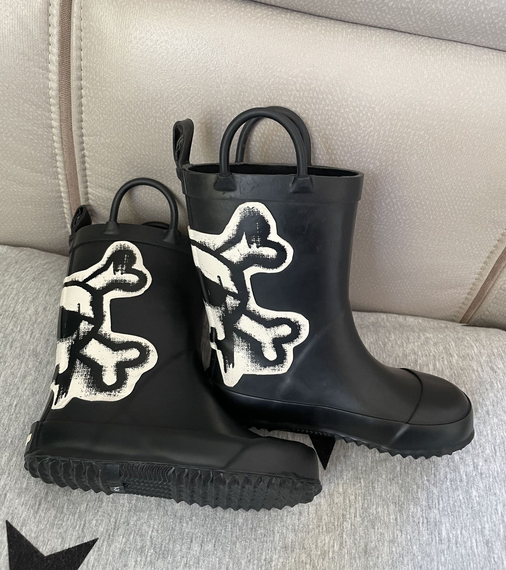 새로운 패션 브랜드 멋진 부모-어린이 레인 부츠 해골 어린이 소년 소녀 미끄럼 방지 방수 패션 야외 미드 튜브 신발스토어 가기