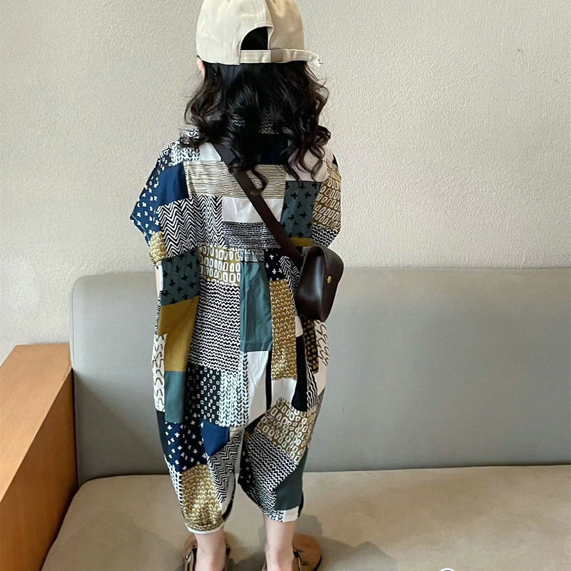 여아 바지 점프 슈트 격자 무늬 점프 슈트 올인원 바지 25 여름 새 스타일 대외 무역 아동 의류 3-8 세스토어 가기