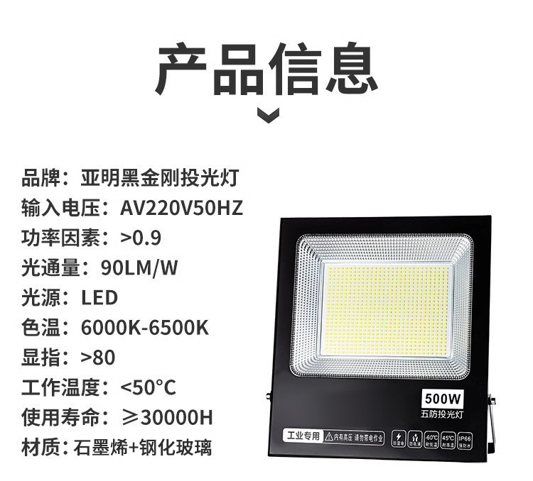 야밍 투광등 방수 고출력 조명등 야외 고루멘 작업장 공장 건설 현장 투광등 LED 조명