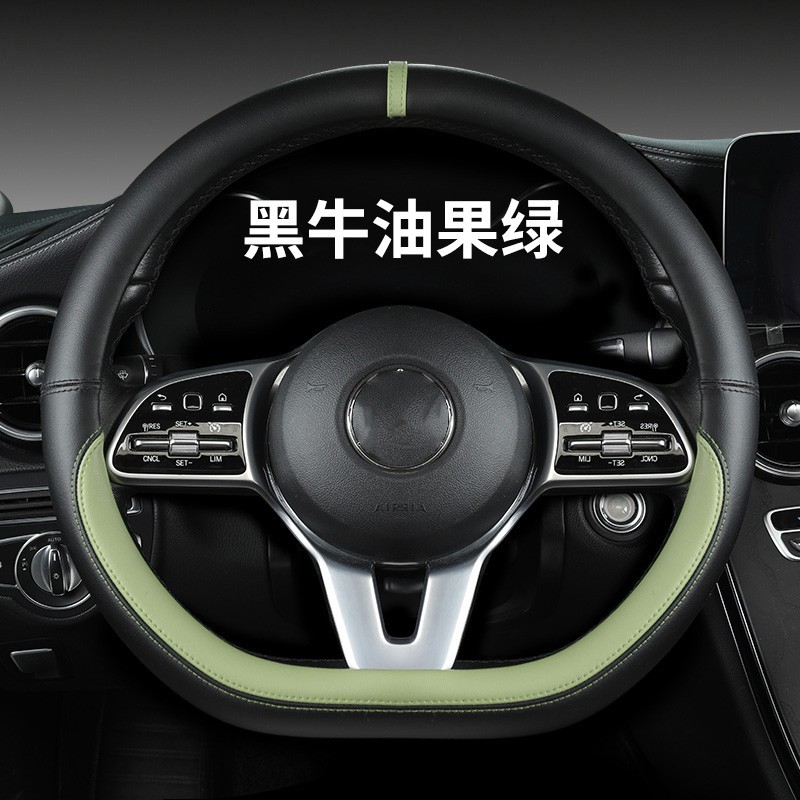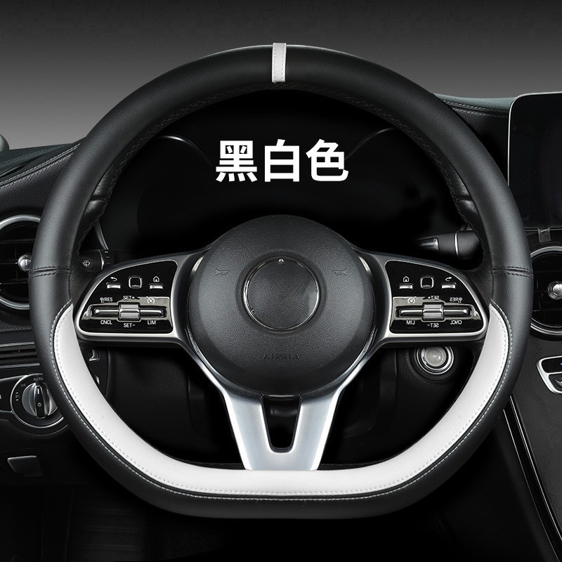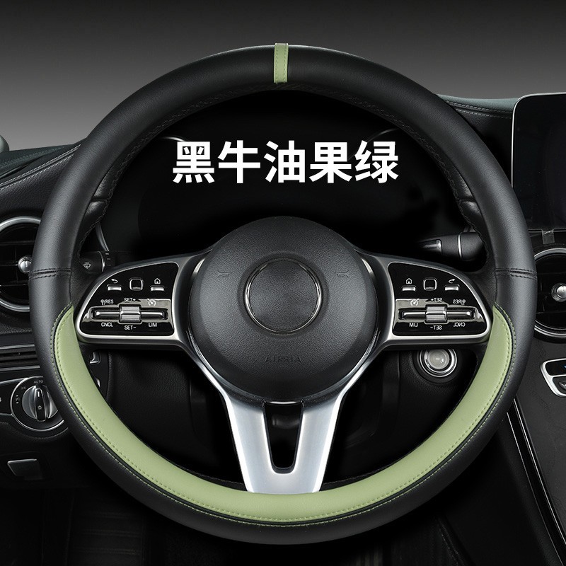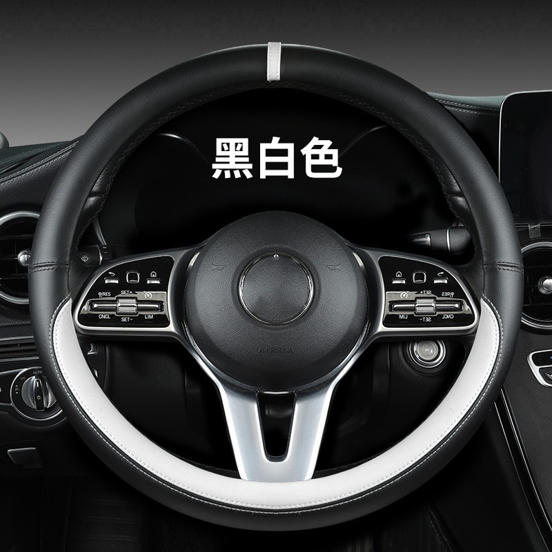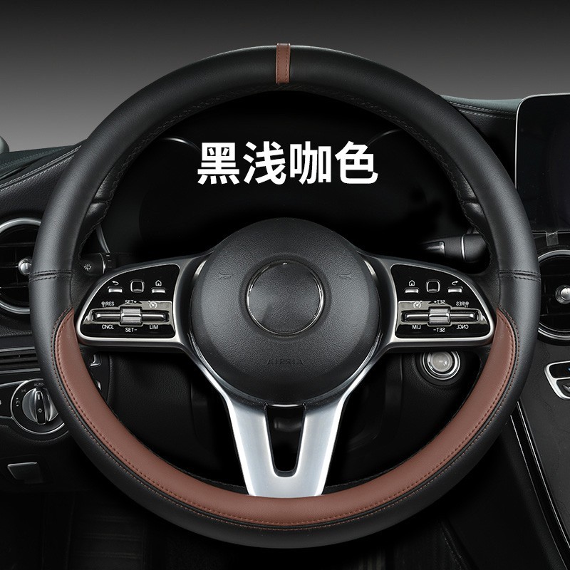 새로운 럭셔리카 로고 핸들 커버 간단한 자동차 용품 핸들 커버 사계절 나파 가죽 라운드 보호 커버스토어 가기
