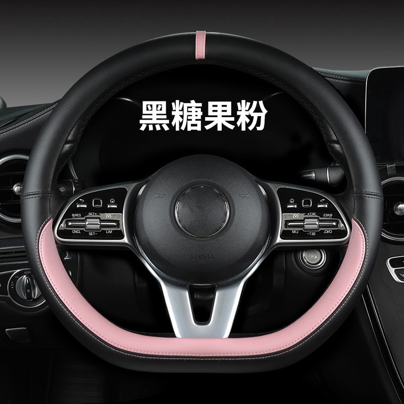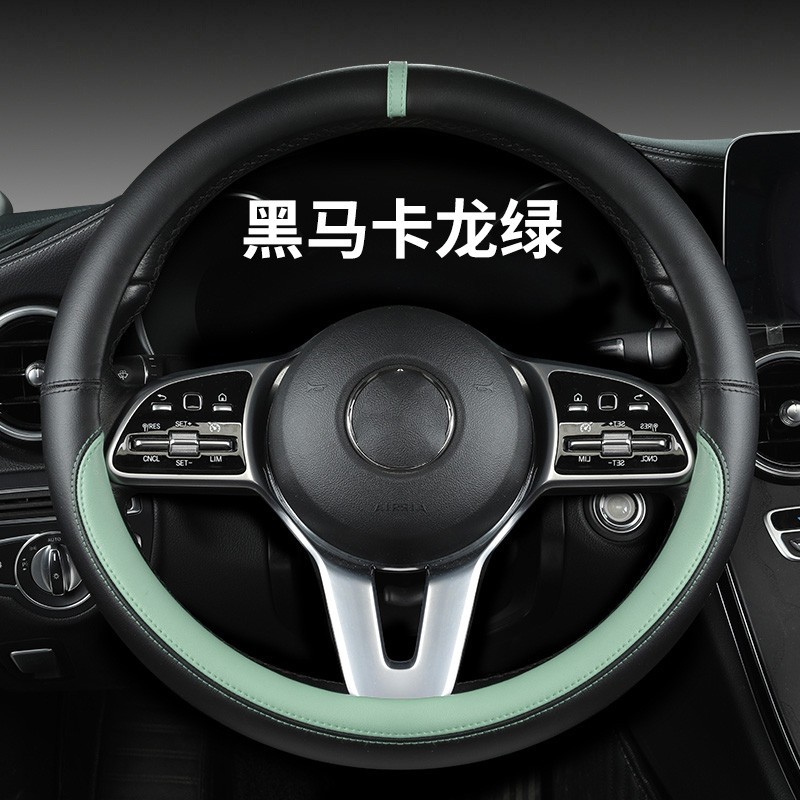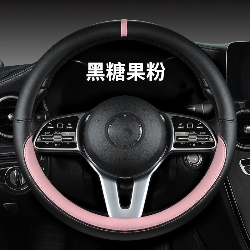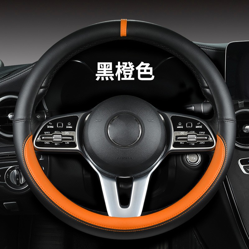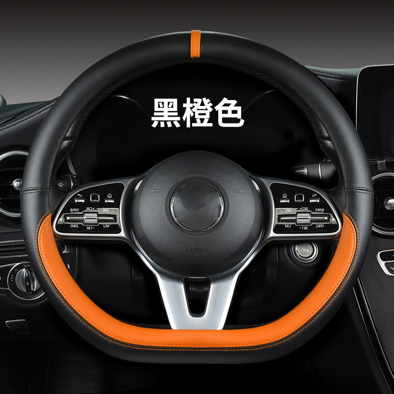 새로운 럭셔리카 로고 핸들 커버 간단한 자동차 용품 핸들 커버 사계절 나파 가죽 라운드 보호 커버스토어 가기