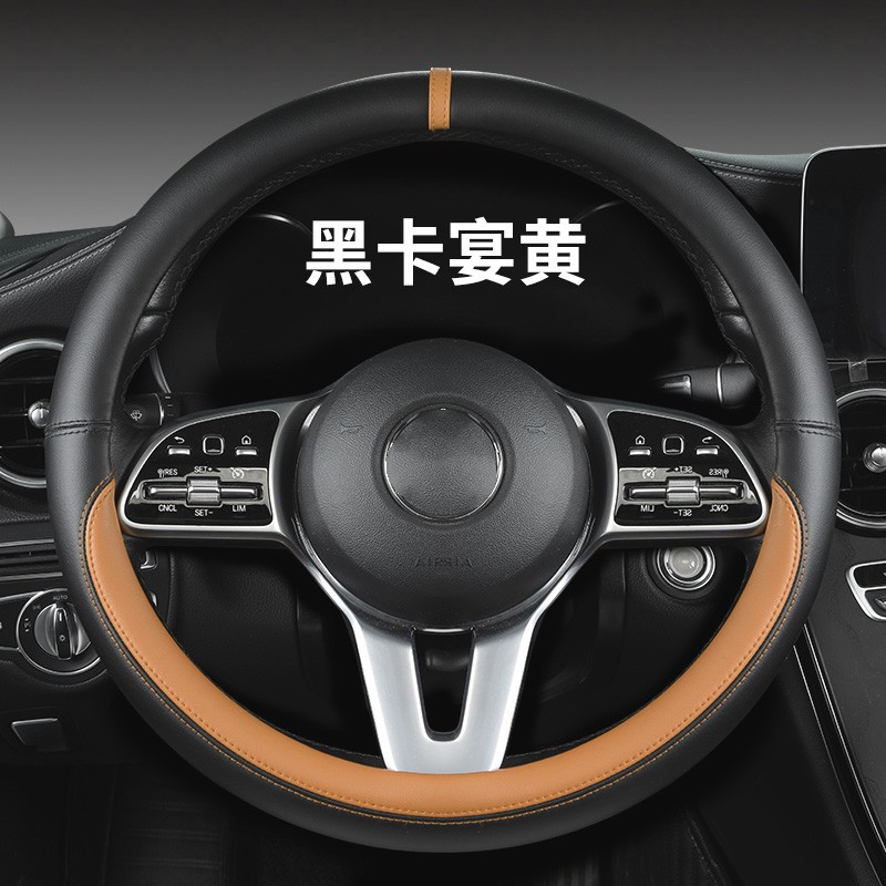 새로운 럭셔리카 로고 핸들 커버 간단한 자동차 용품 핸들 커버 사계절 나파 가죽 라운드 보호 커버