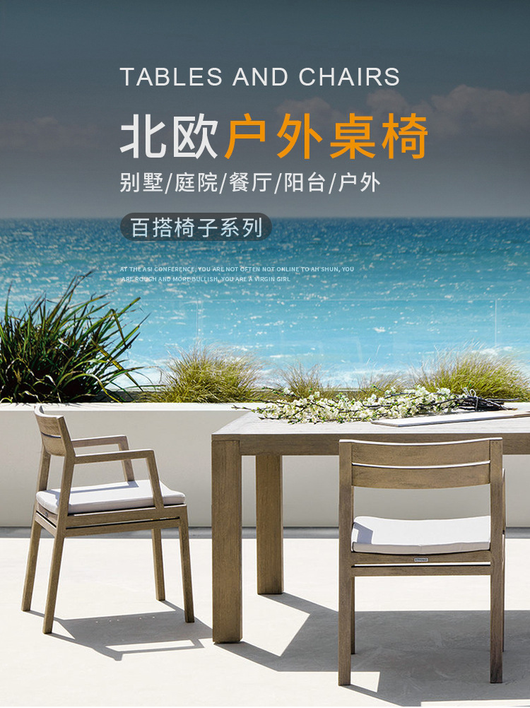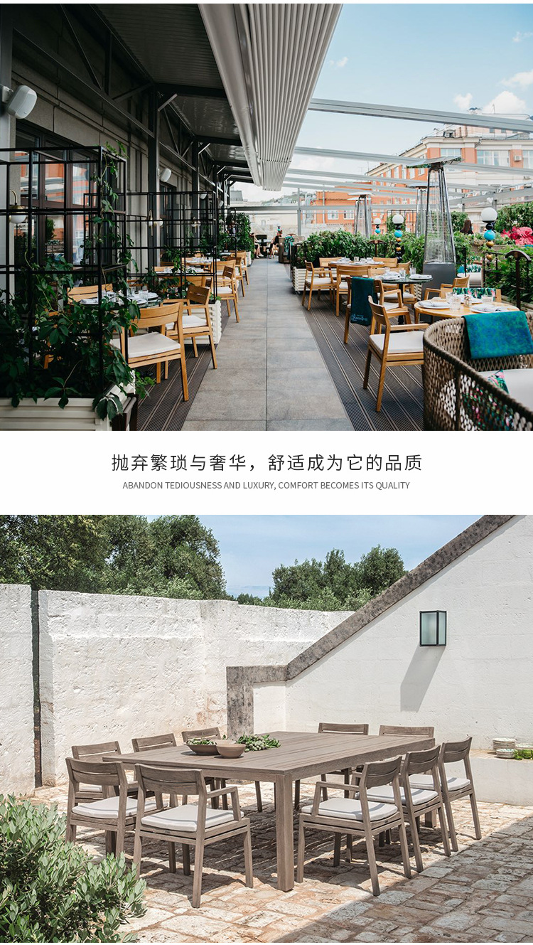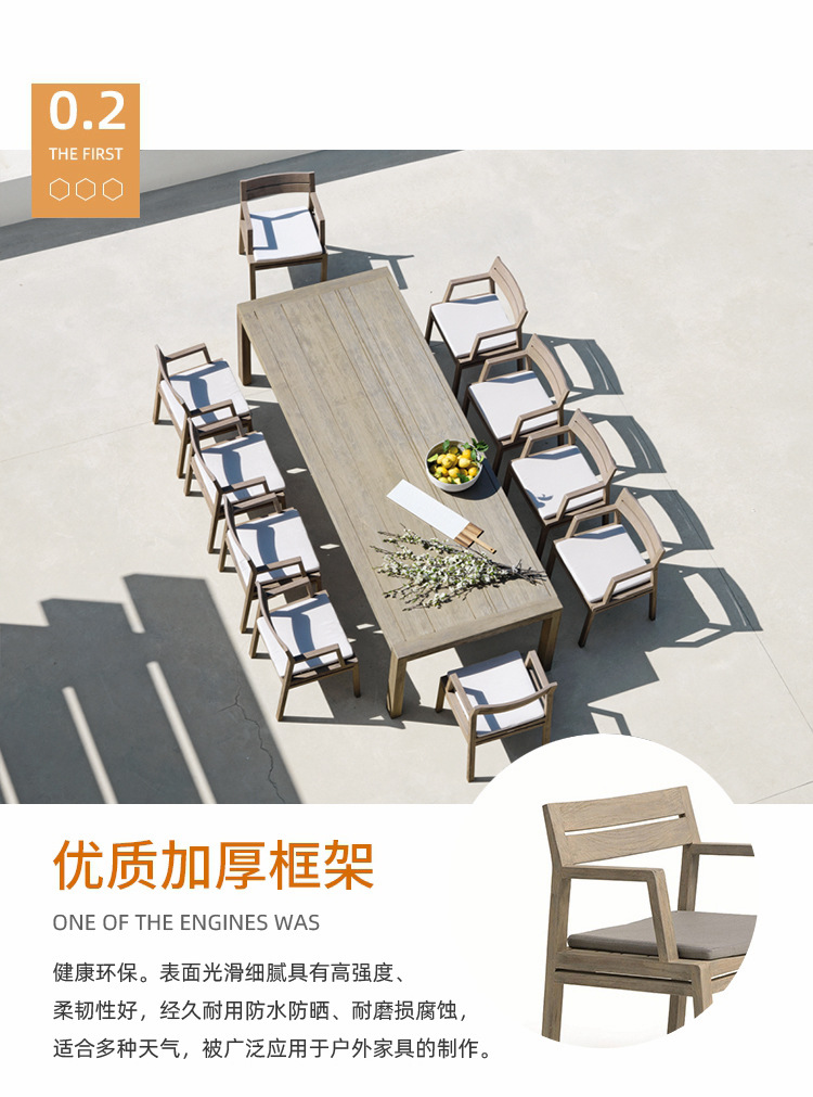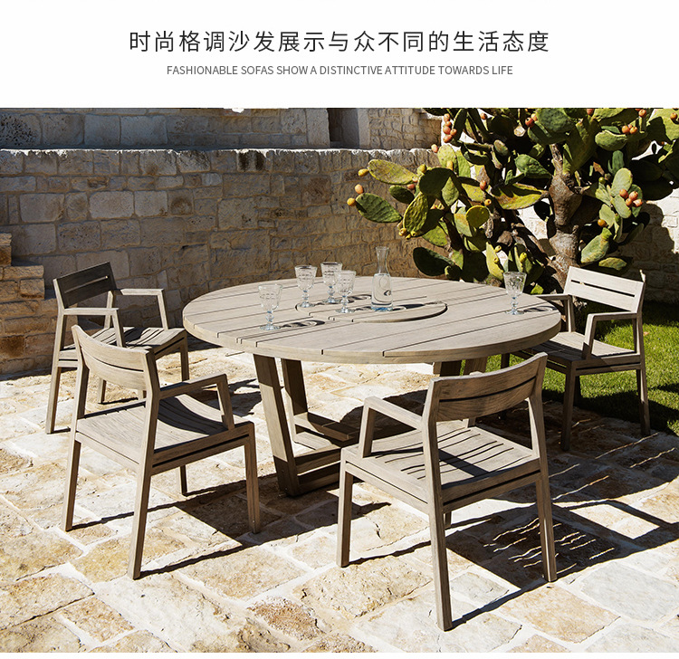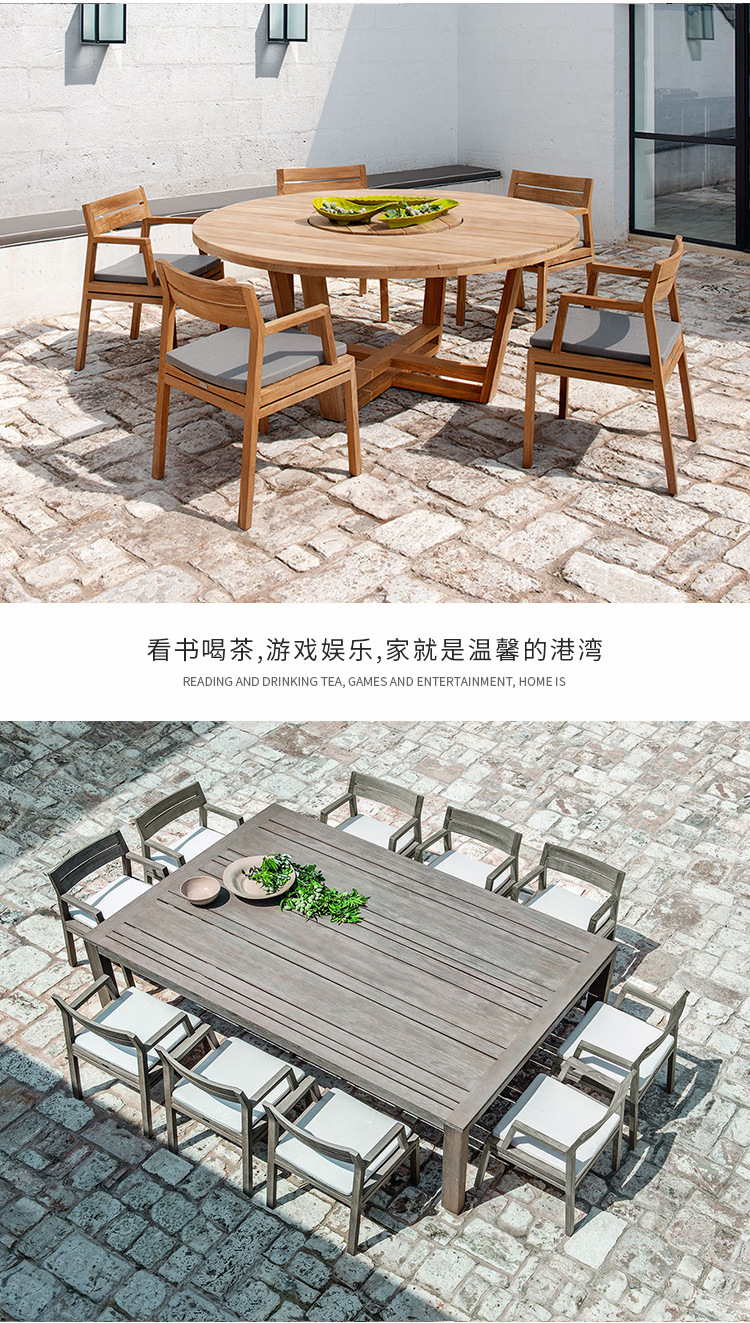 고민 야외 원목 식탁 및 의자 티크 오픈 에어 고급 빌라 안뜰 북유럽 심플 썬 룸 가구