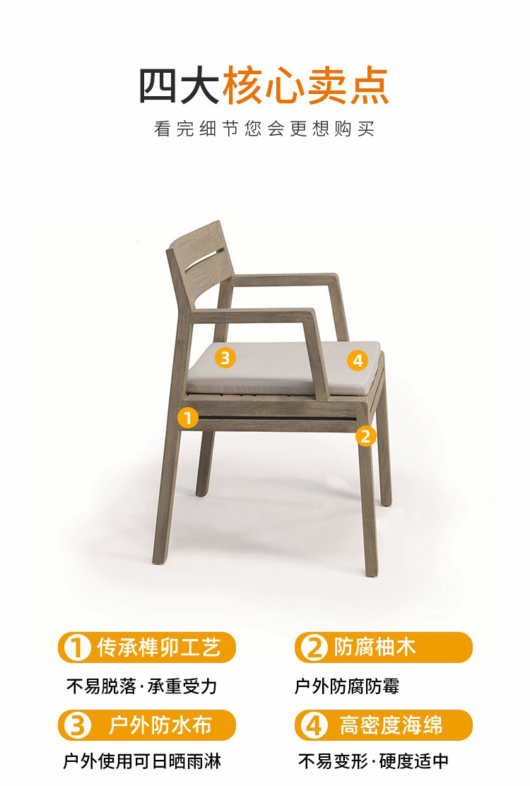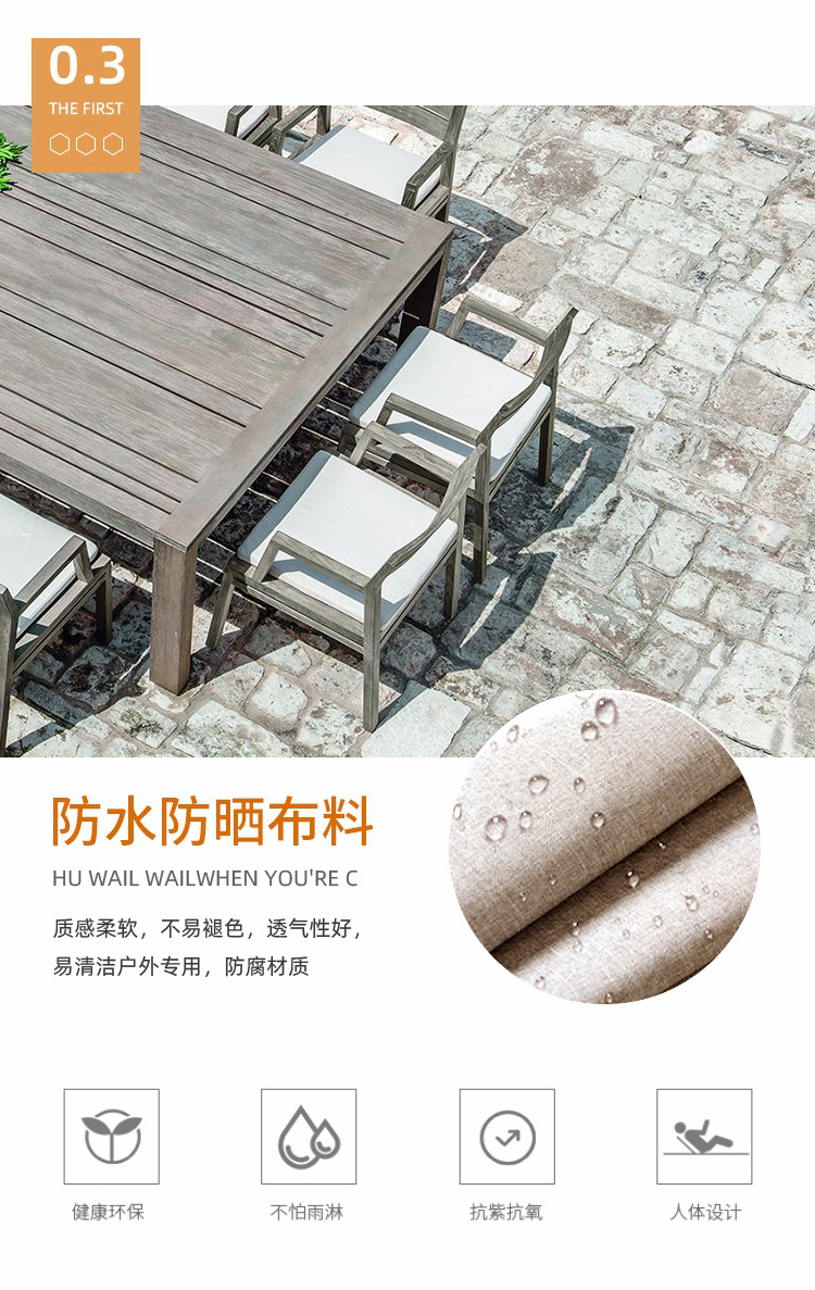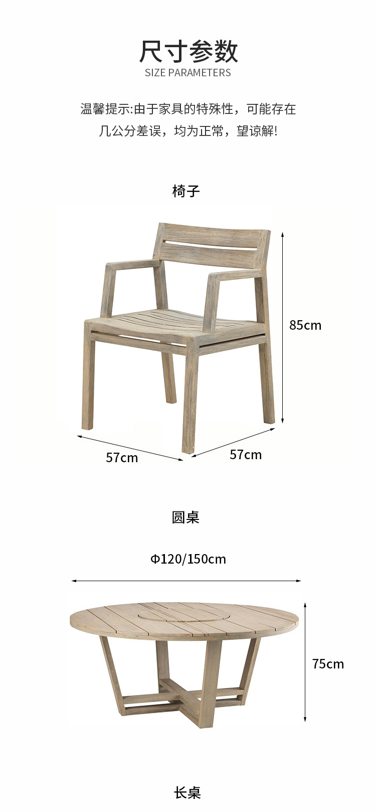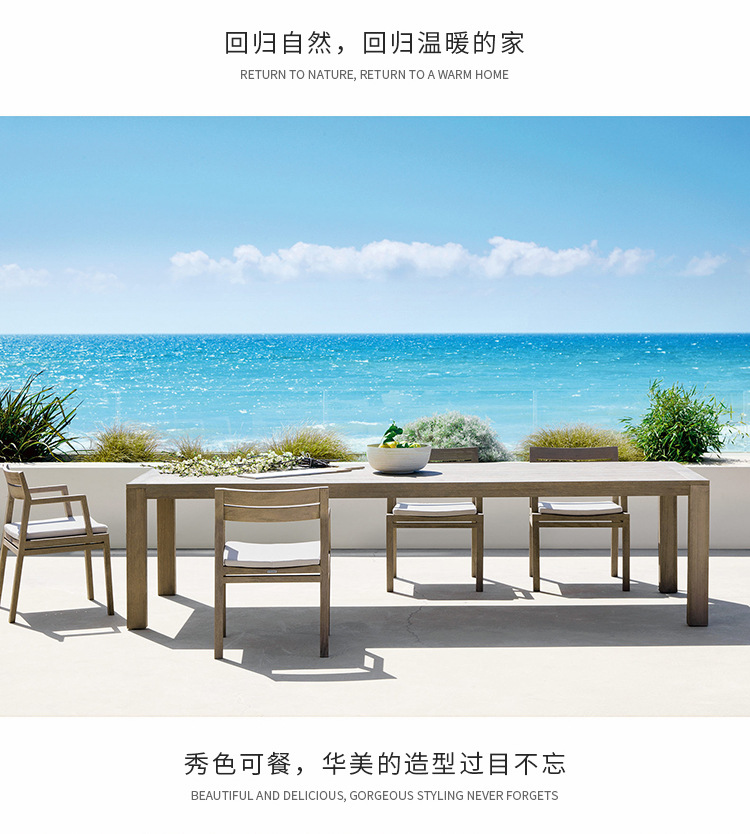 고민 야외 원목 식탁 및 의자 티크 오픈 에어 고급 빌라 안뜰 북유럽 심플 썬 룸 가구