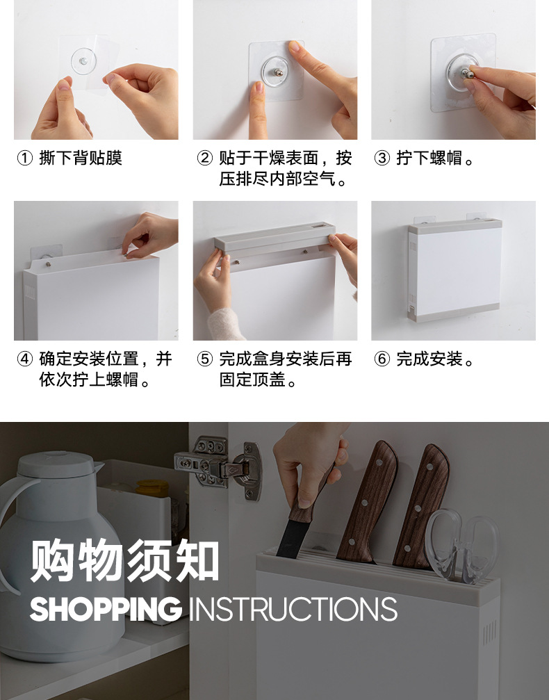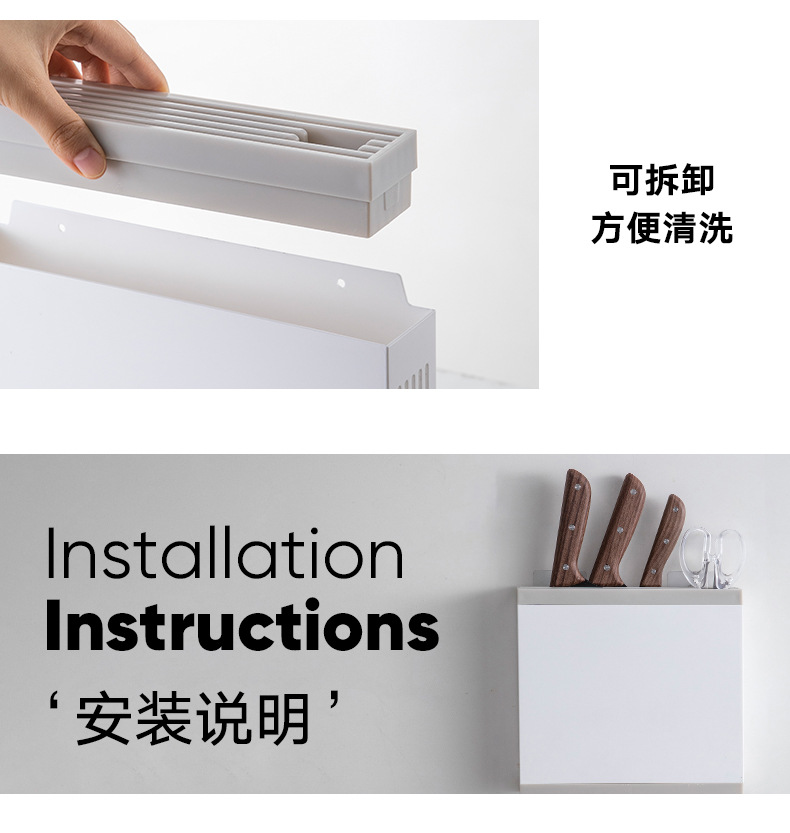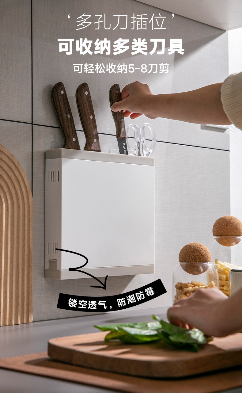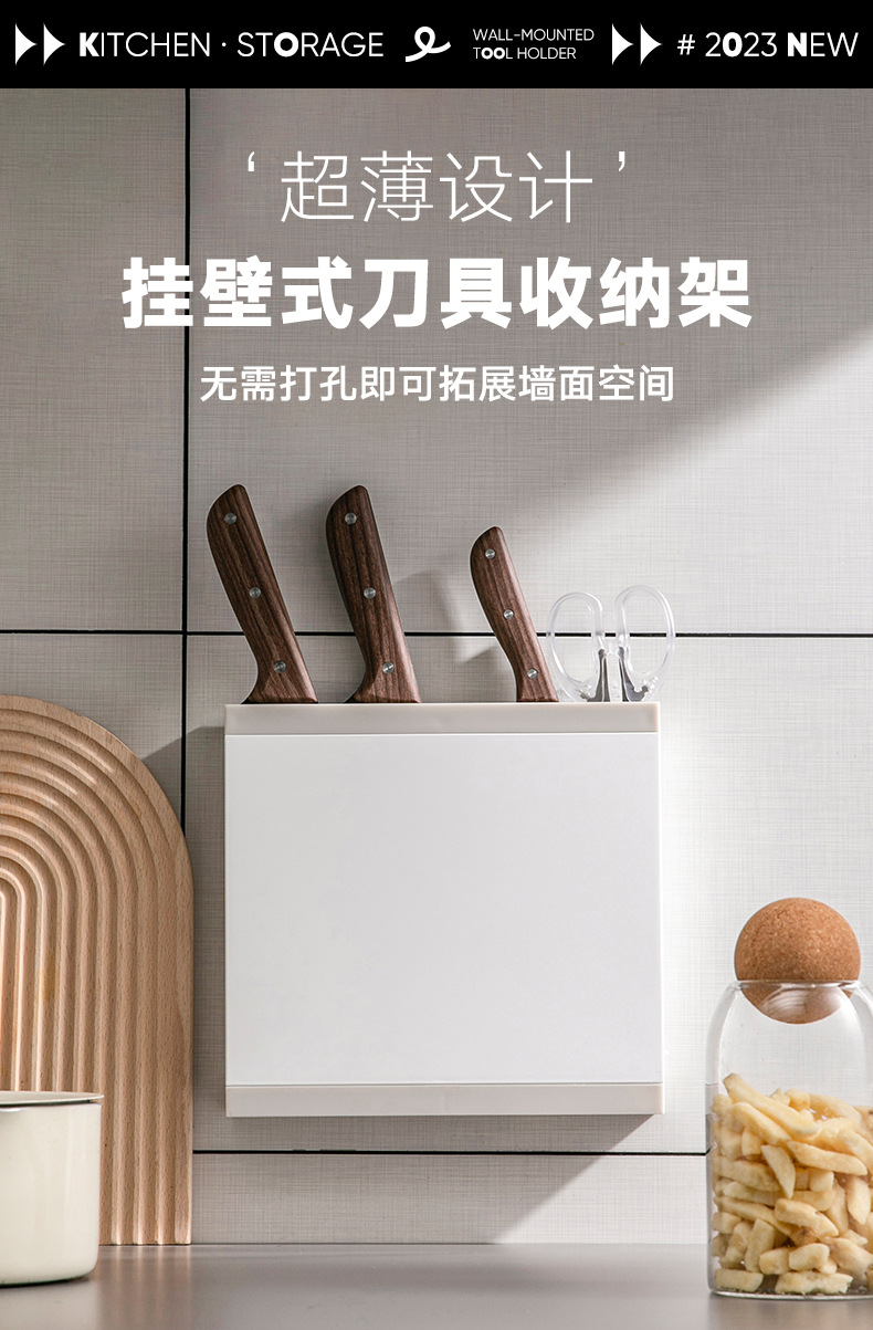 Quina ABS 일본식 나이프 홀더 벽걸이 형 비 천공 나이프 보관 랙 주방 나이프 가위 가정용 수납 랙
