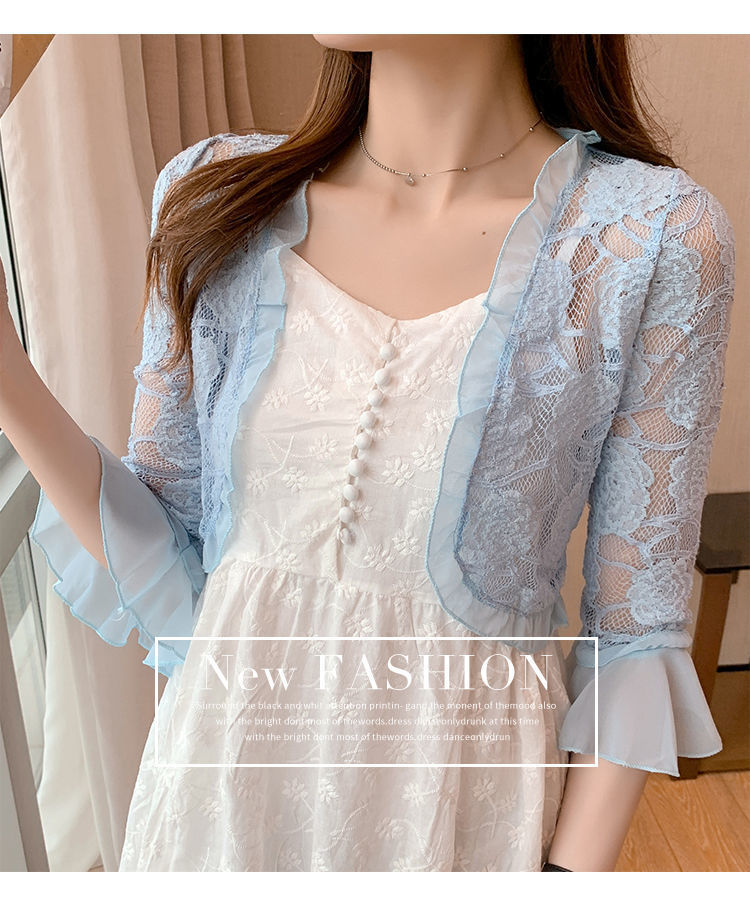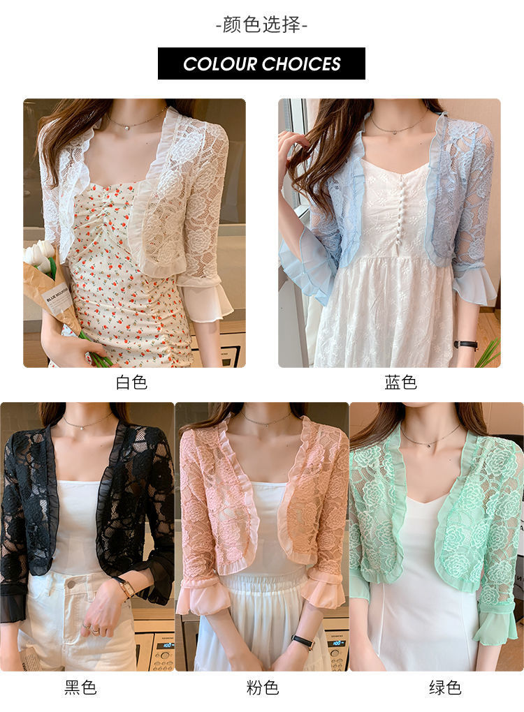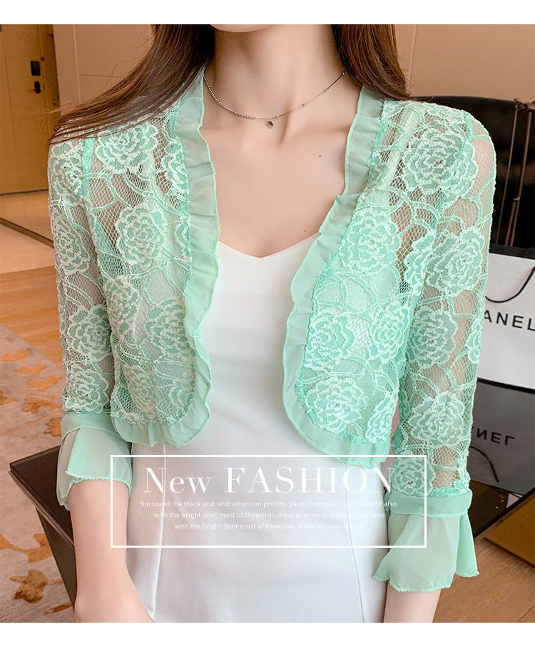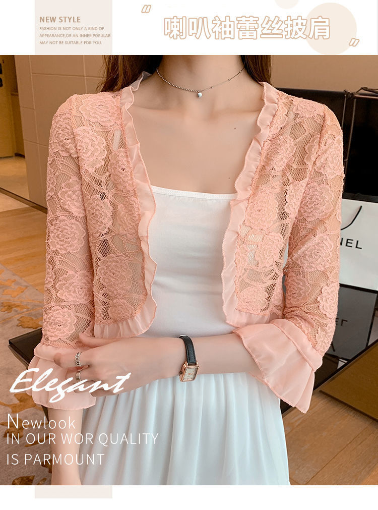 여름 레이스 숄 조끼 가디건 짧은 코트 쉬폰 반팔 상의 여성용 자외선 차단 의류 에어컨 셔츠 오프숄더스토어 가기