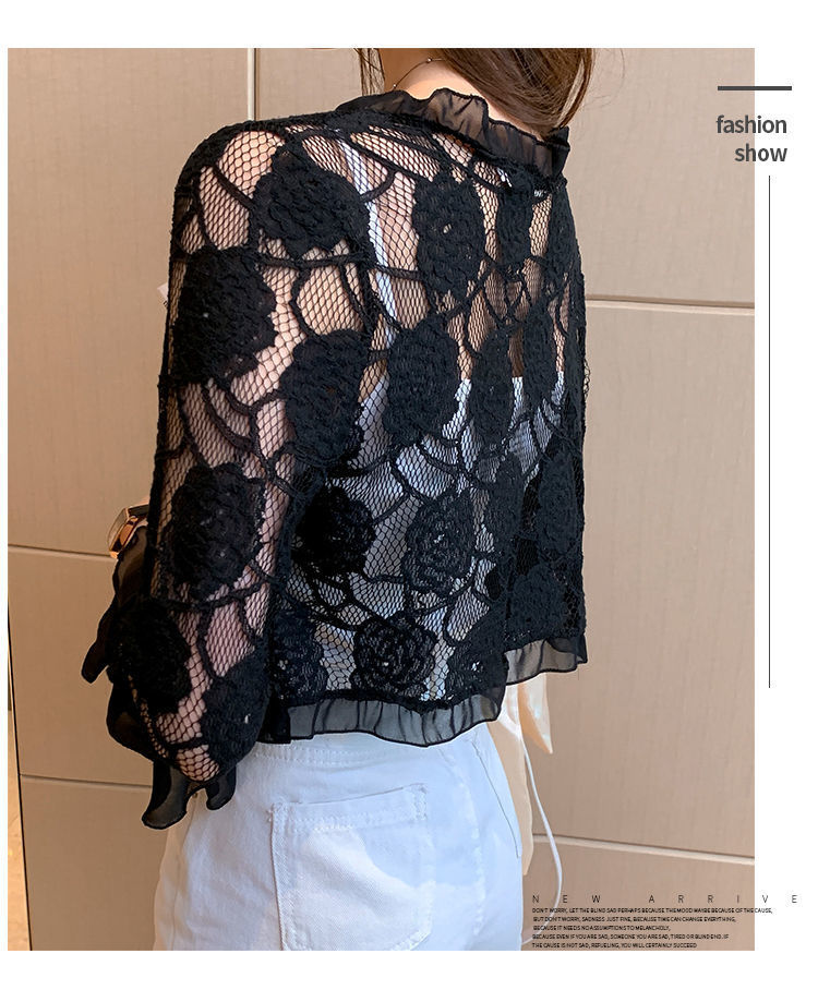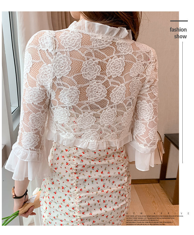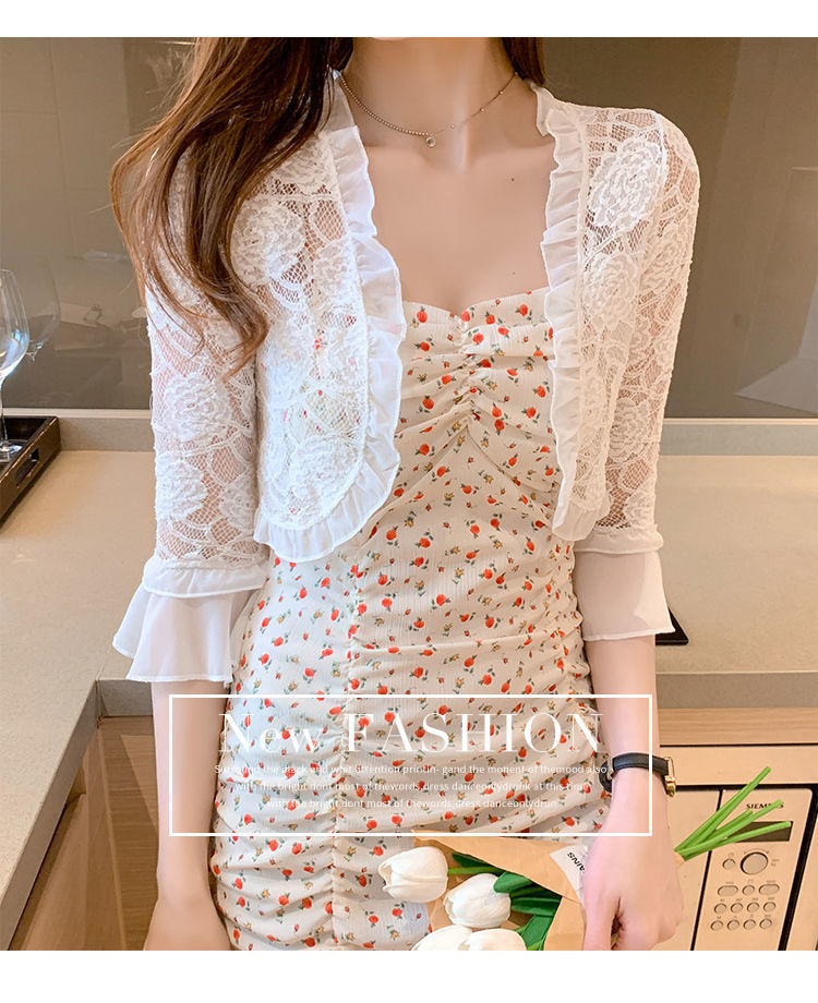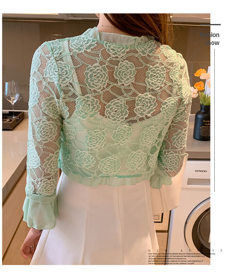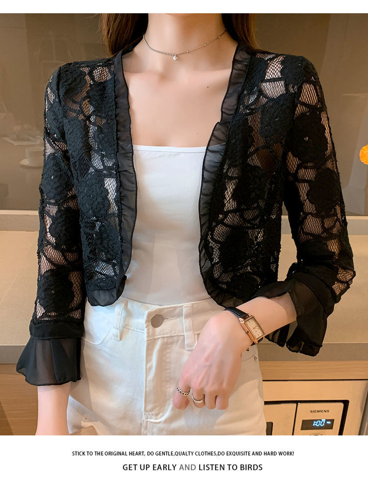 여름 레이스 숄 조끼 가디건 짧은 코트 쉬폰 반팔 상의 여성용 자외선 차단 의류 에어컨 셔츠 오프숄더스토어 가기