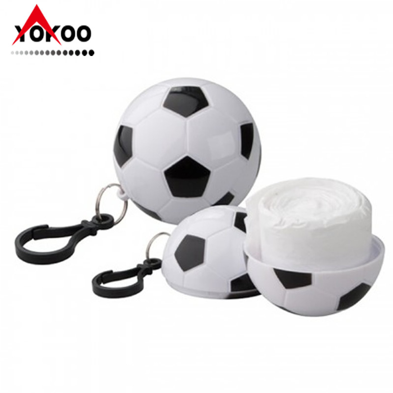 一次性雨衣1pc PE100%全新材料 符合欧美环保要求可通过检测 足球雨衣现货白 色 ,10000个以上可定制颜色 雨衣的厚度 0.015mm,如需印刷,起订量3000件,logo印刷尺寸 25*25cm以内 小球直径6.3cm,球上可以印刷1-2色logo,logo尺寸 2.8*2.8cm以内