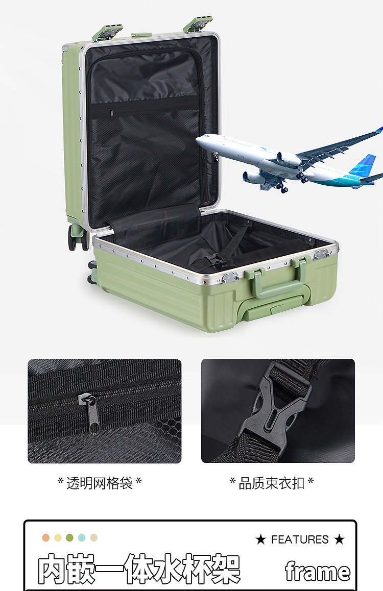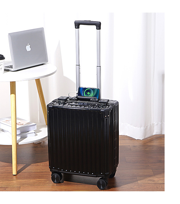 수하물 케이스 여성용 18 인치 소형 트롤리 케이스 컵 홀더 알루미늄 프레임 암호 케이스 남성용 여행 가방 강력한 충전식 탑승 케이스