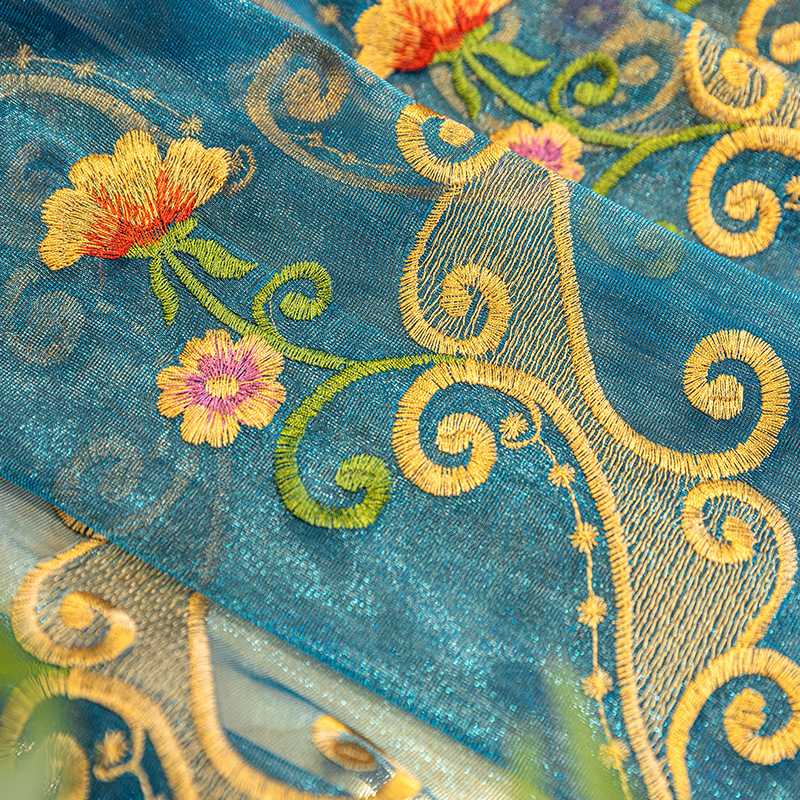 고급 자수 창 화면 미국 목가적 인 꽃 거실 침실 발코니 식당 거즈 커튼 빛 전송 커튼 완제품