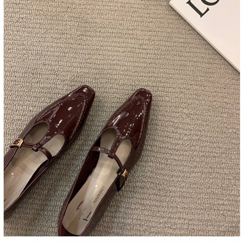 한국판 2025년 신상 봄 레트로 프렌치 스타일 두꺼운 굽 뾰족코 메리제인 여성용 페이턴트 가죽 중고 신발스토어 가기