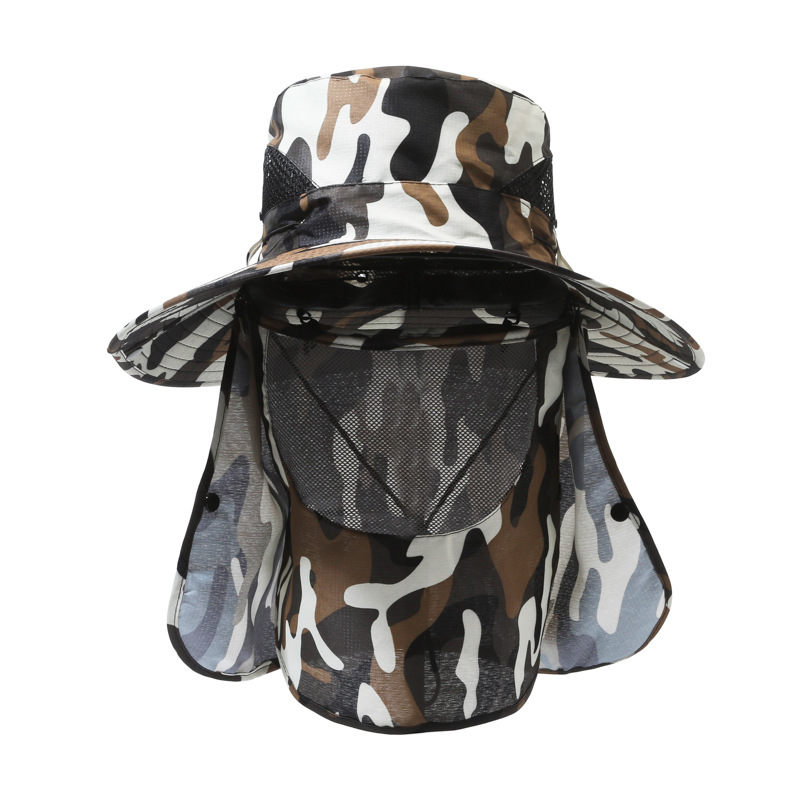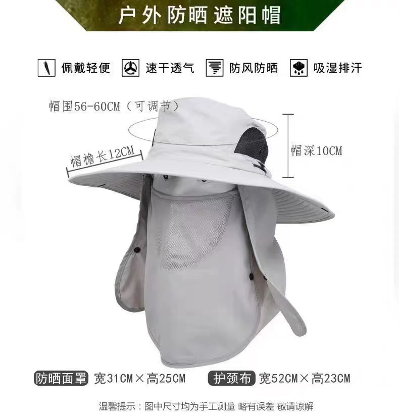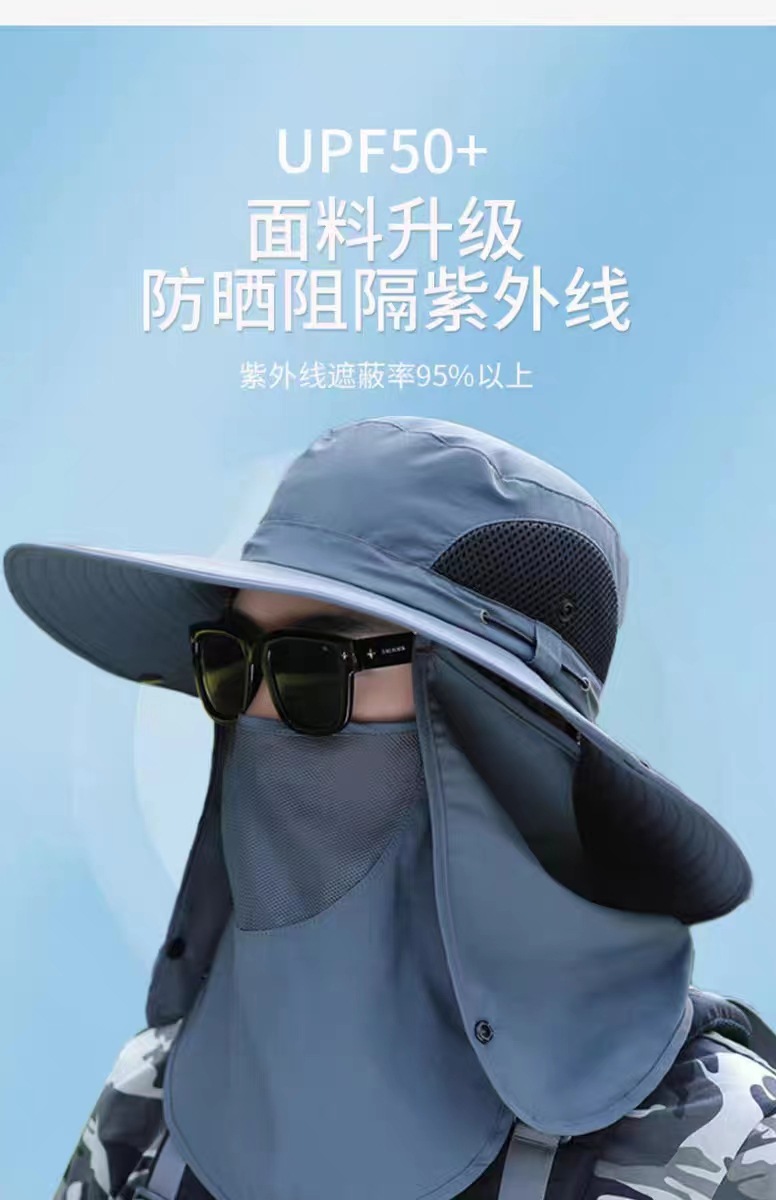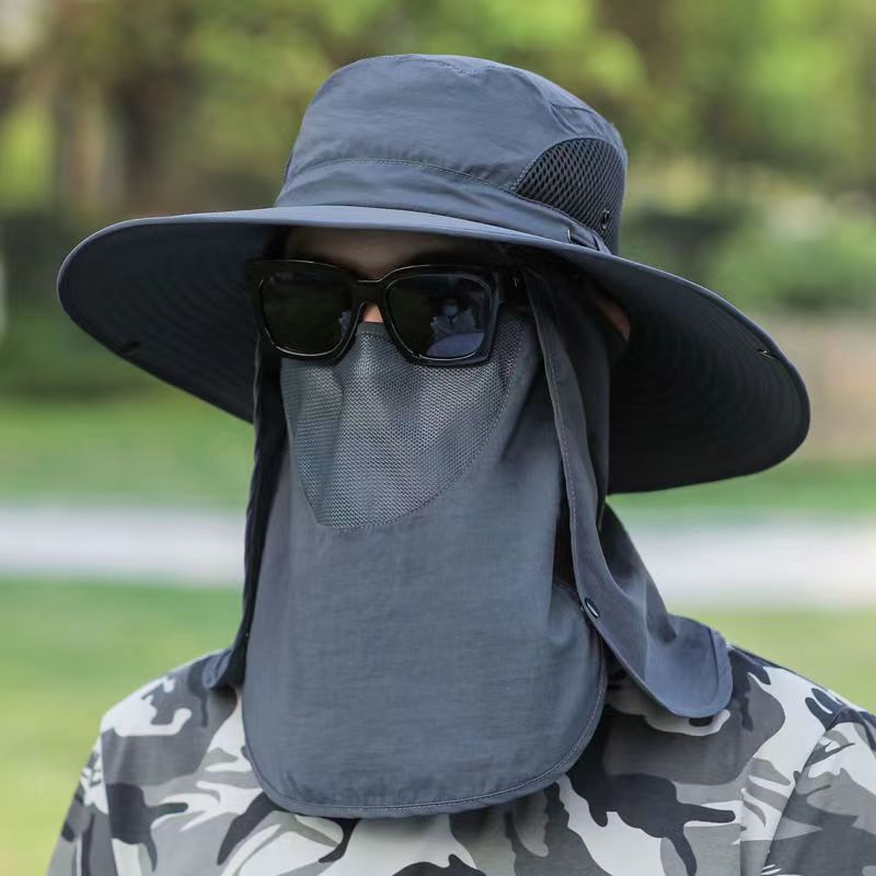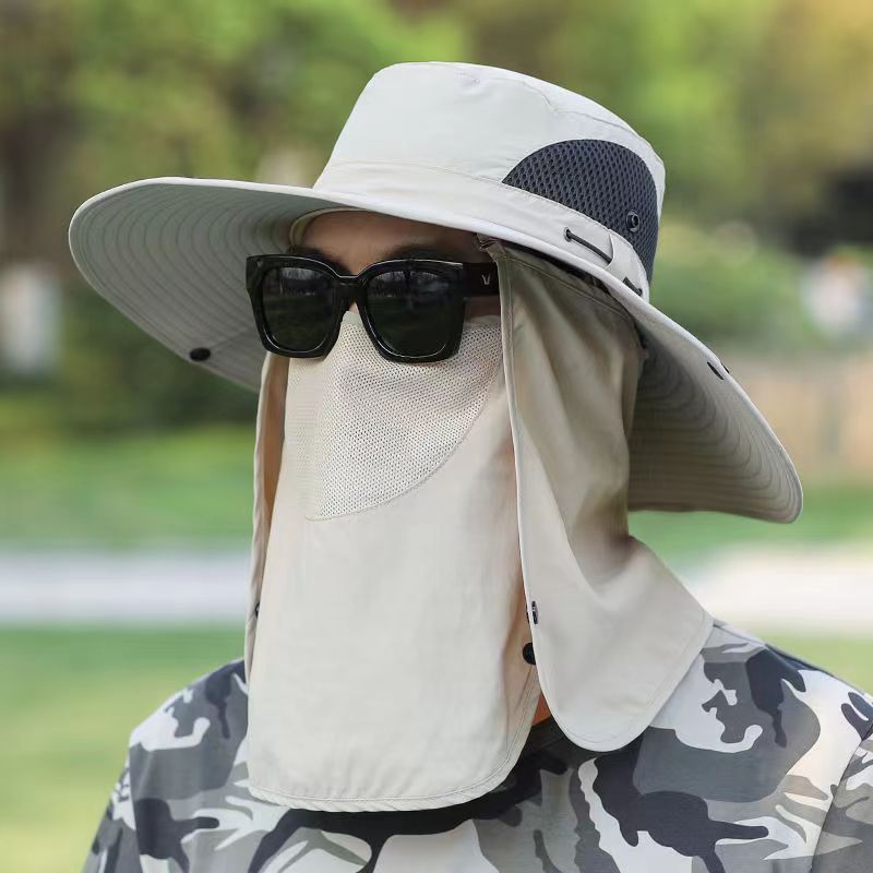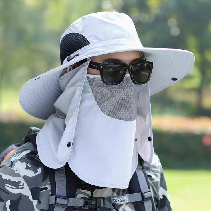 새로운 여름 남성용 태양 모자 큰 챙 등산 모자 마스크 낚시 모자 야외 태양 보호 이동식 태양 모자