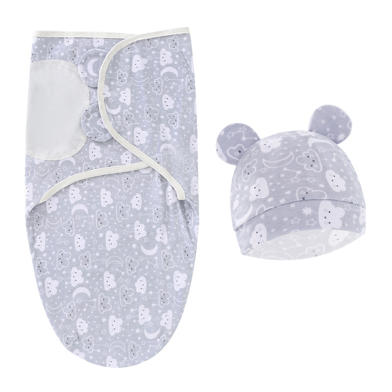 • 회색 웃는 얼굴 구름 봄 누에 침낭 + 모자