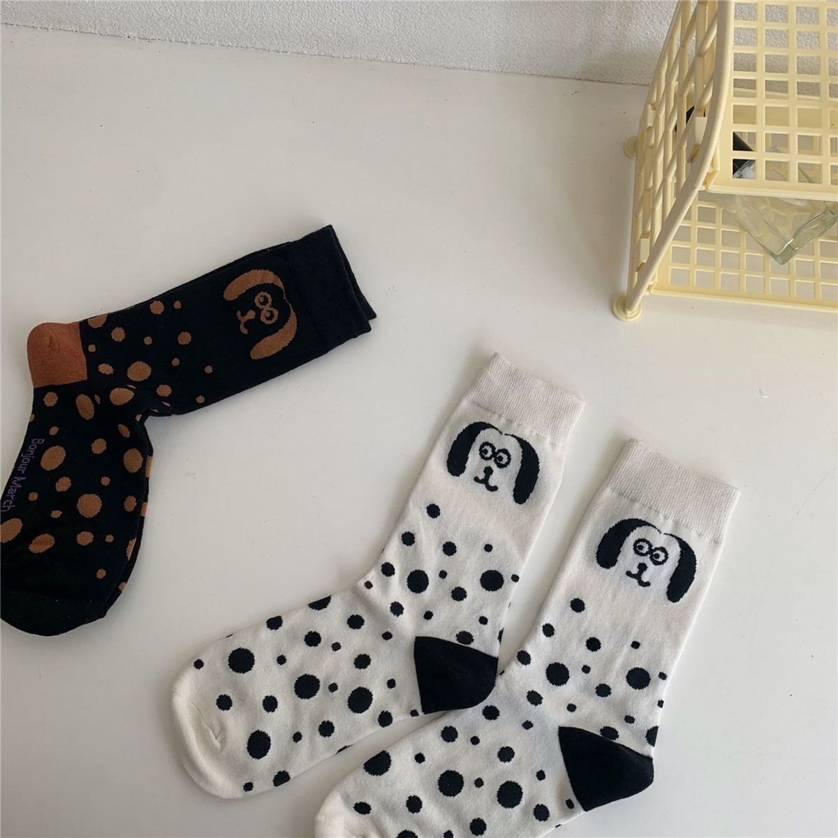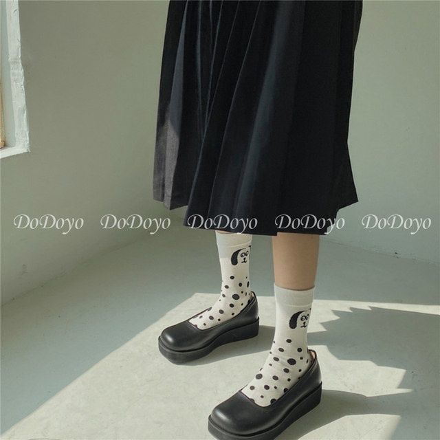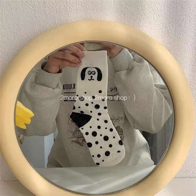 2021 새로운 한국 스타일 일러스트 흑백 점박이 강아지 동물 점 중형 양말 만화 양말스토어 가기