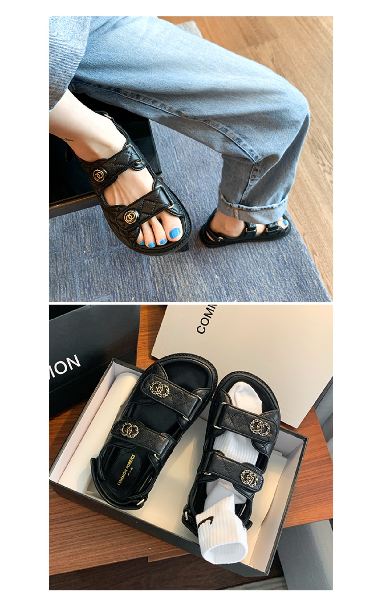 여성을위한 Xiaoxiangfeng 샌들 2025 새로운 요정 스타일 패션 벨크로 여름 새로운 다목적 플랫 여성 신발 ins스토어 가기