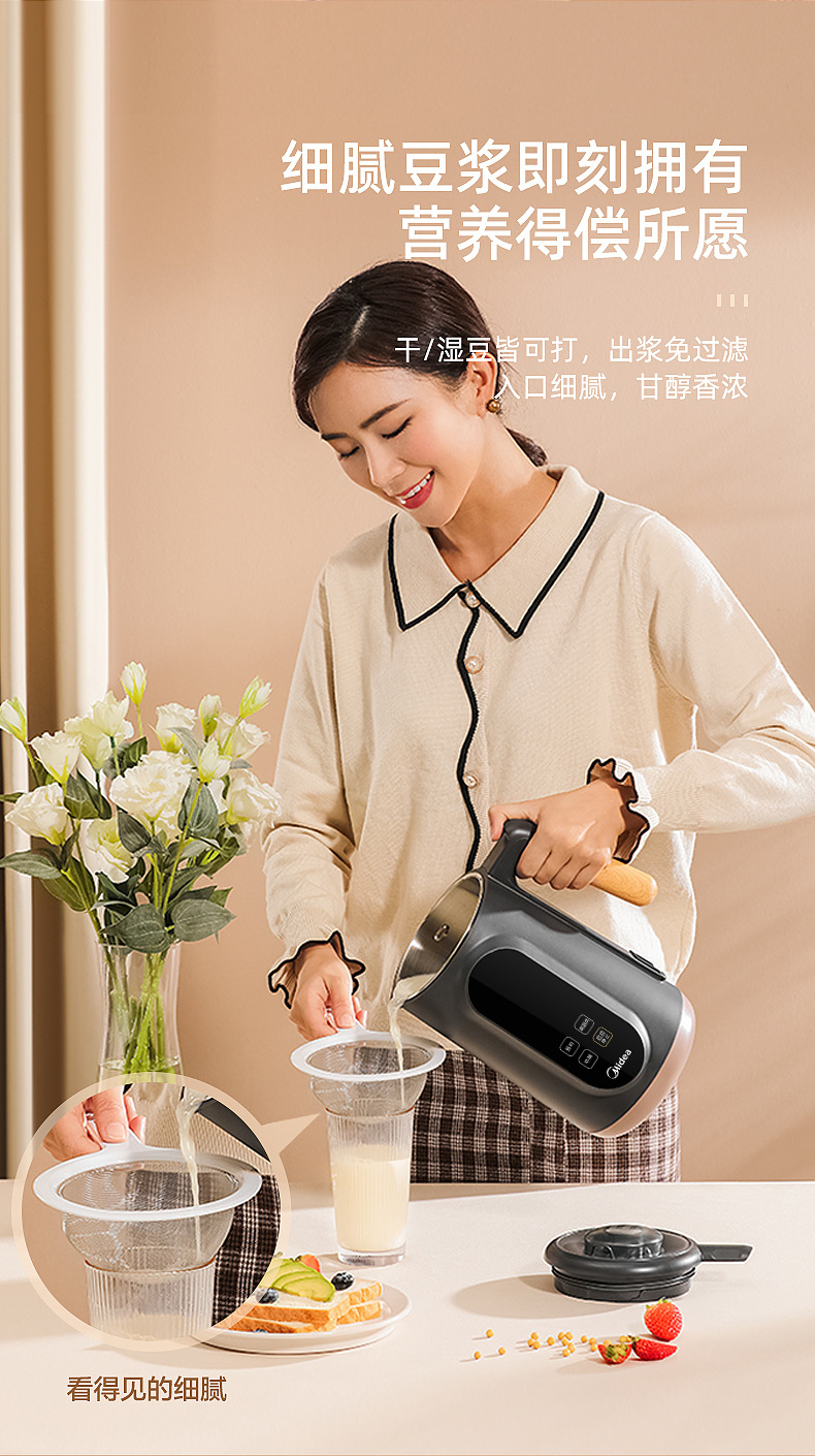 Midea/Midea 두유 기계 DJ10W2-006S 미니 가정용 다기능 벽 깨기 요리 기계 지능형 예약