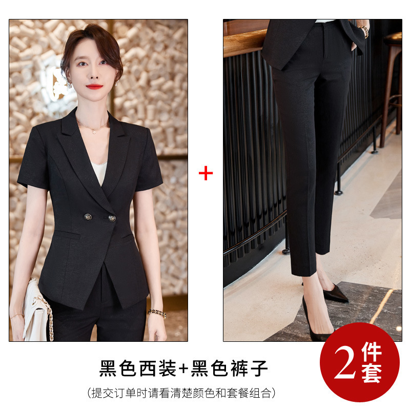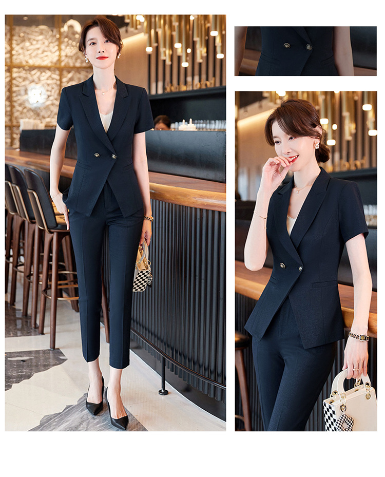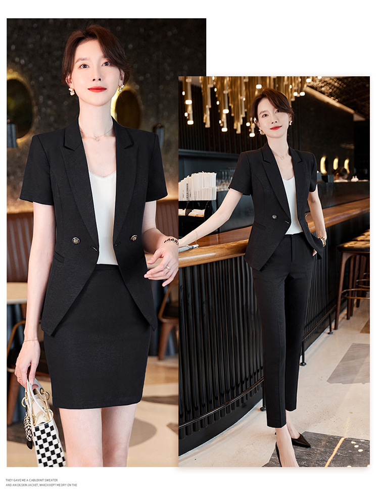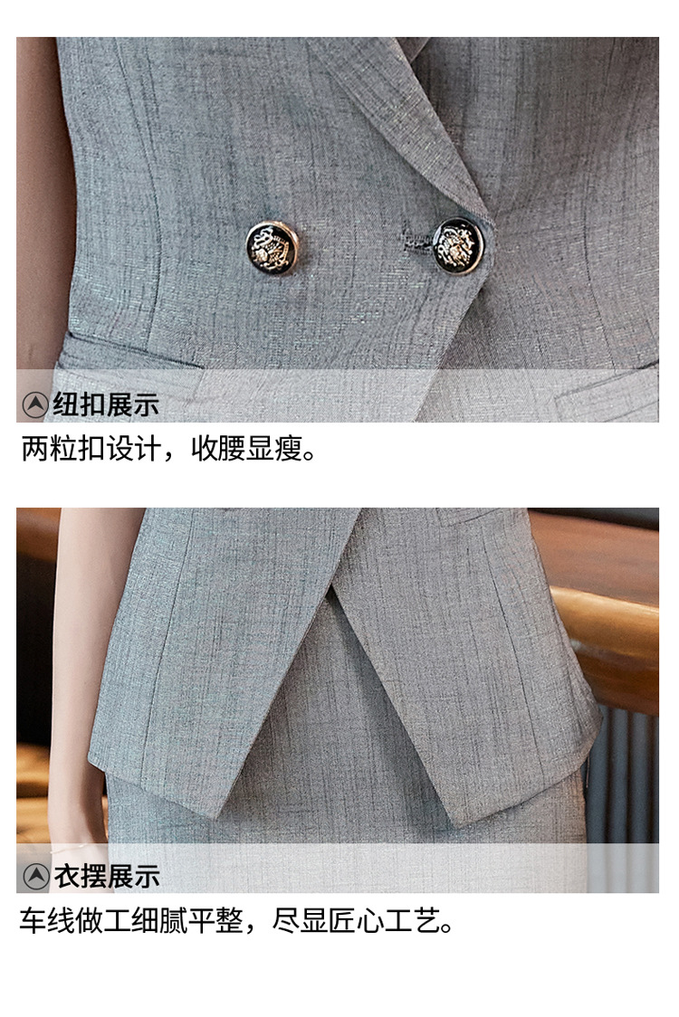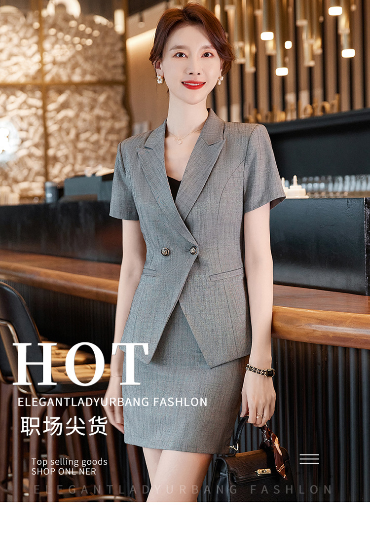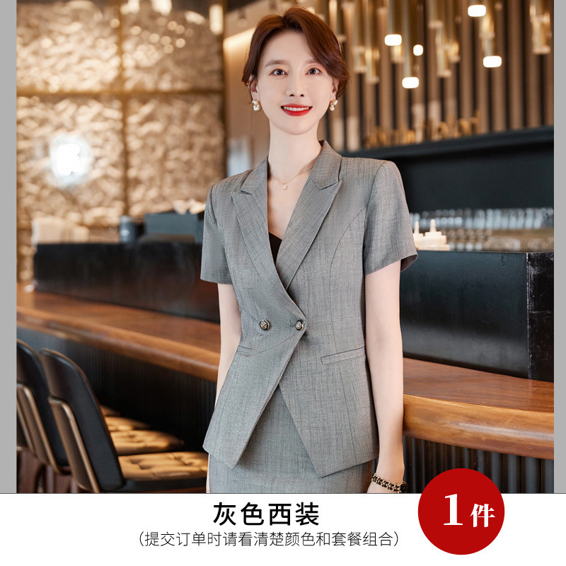 세븐 밸리 니앙 스튜어디스 프로페셔널 세트 여성용 여름 반팔 호텔 리셉션 출납원 원피스 그레이 세트