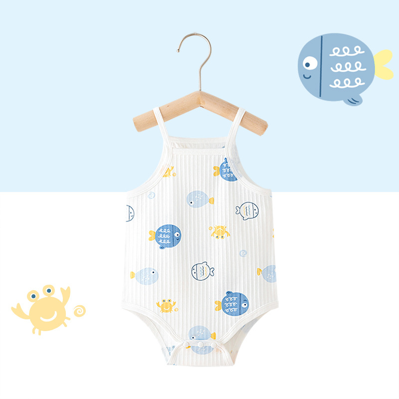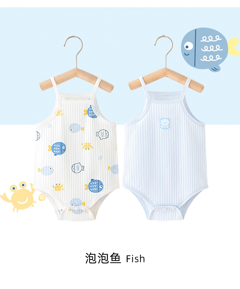아기 슬링 백 방귀 옷 여름 얇은 아기 점프 수트 순면 여름 삼각형 모자 등산 의류 남성과 여성을위한 민소매 옷