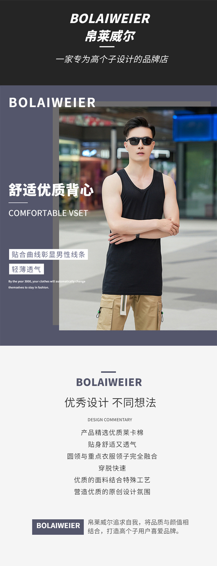 키 큰 여름 얇은 면 조끼 남자의 유행 원활한 캐주얼웨어 유행 운동복 민소매 2316스토어 가기