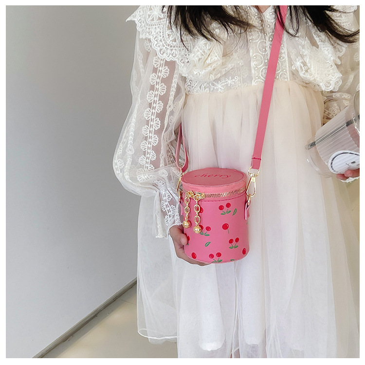 어린이 신선한 스타일 크로스 바디 백 귀여운 미니 백 레드 백 여성용 여름 실린더 백 체인 동전 지갑