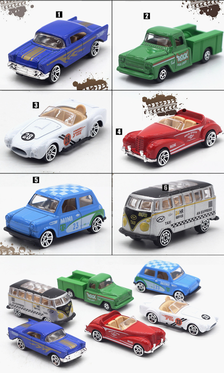 【商品】6款合金滑行复古老爷车模型套装
