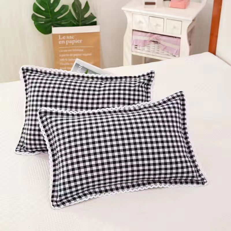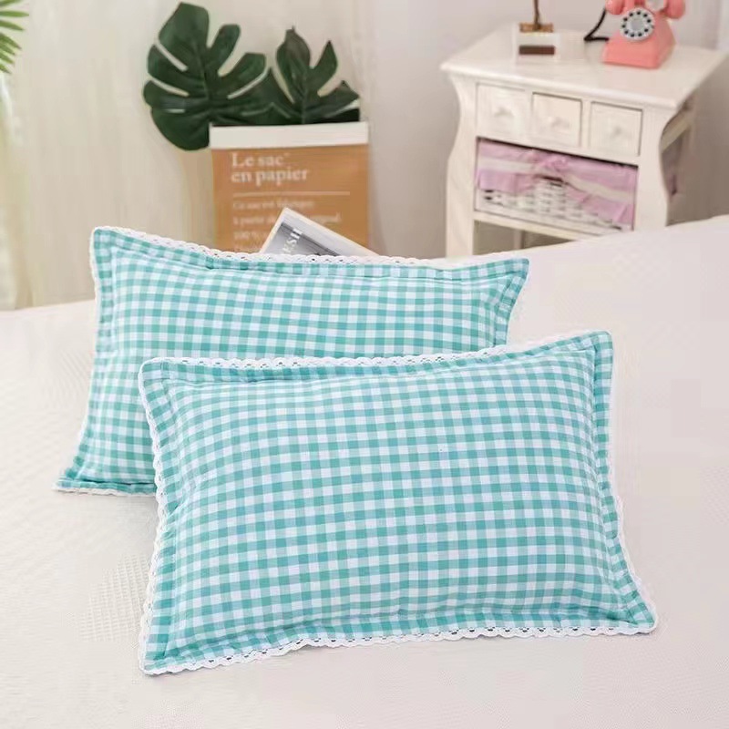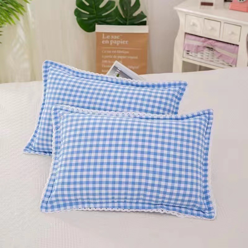 워싱 코튼 베갯잇 45*65 간단한 격자 무늬 어린이 성인 싱글 베갯잇 학생 기숙사 베갯잇