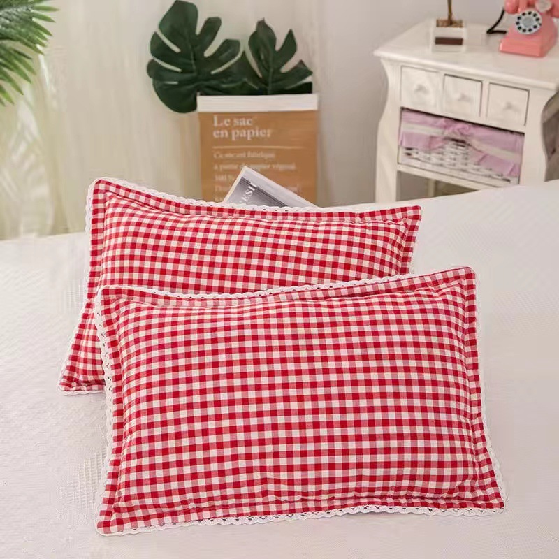 워싱 코튼 베갯잇 45*65 간단한 격자 무늬 어린이 성인 싱글 베갯잇 학생 기숙사 베갯잇스토어 가기