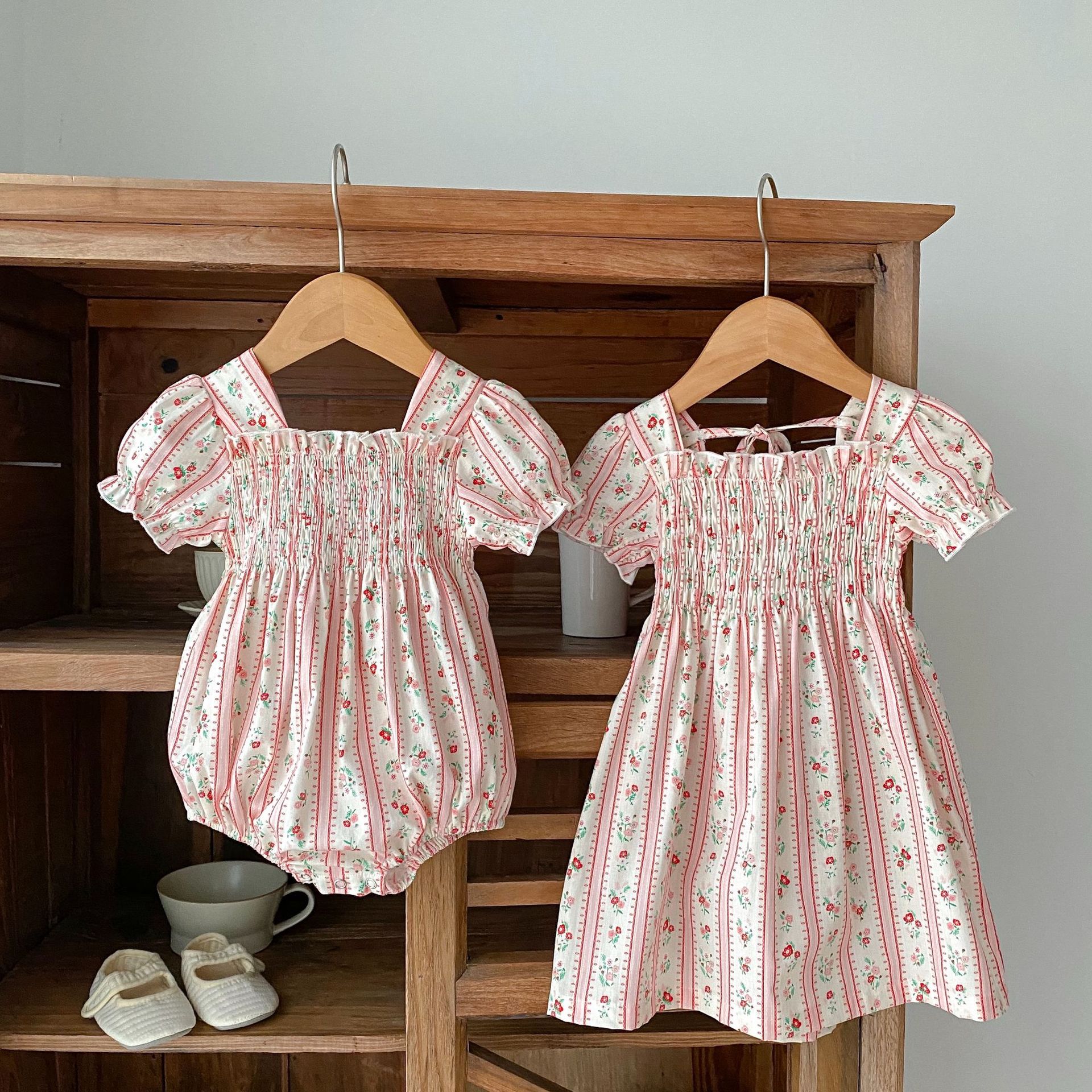여름 옷 아기와 어린 아이의 원피스 옷 아기 소녀 자매 옷 꽃 세로 반팔 모자 + 자매 롱 스커트스토어 가기