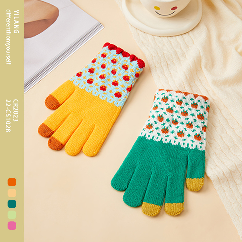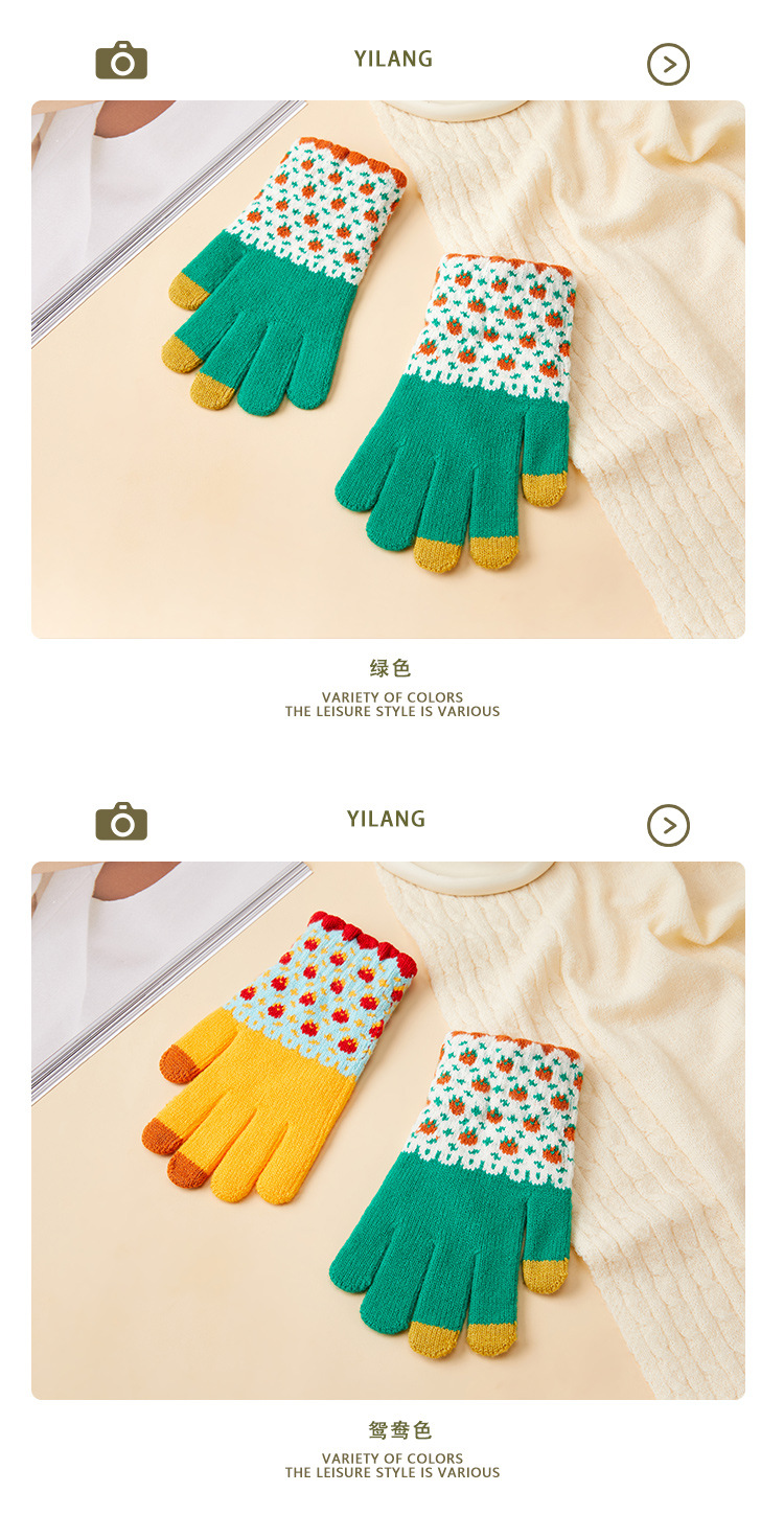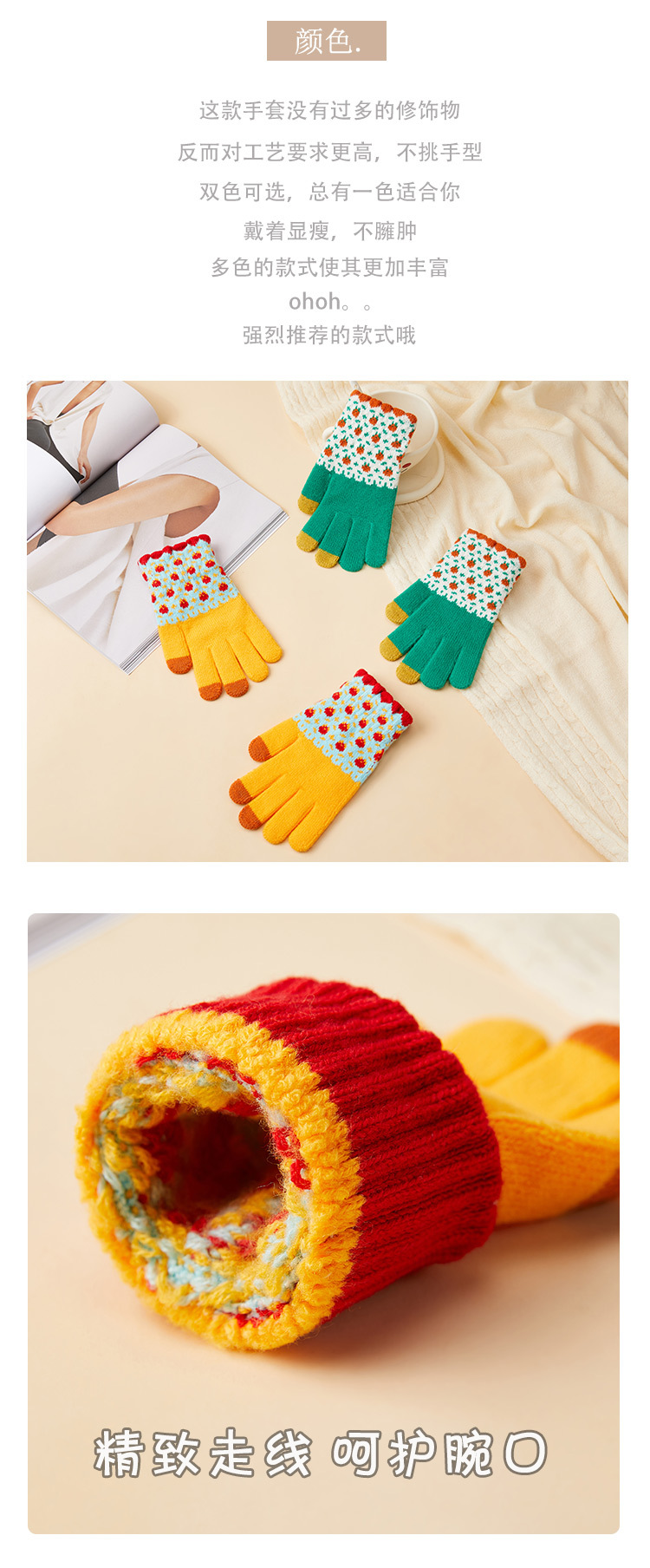 가을 겨울 여성용 두꺼운 플리스 안감 다섯 손가락 학생용 귀여운 니트 장갑 방한 자전거 타기 터치스크린 보온 한국 스타일스토어 가기