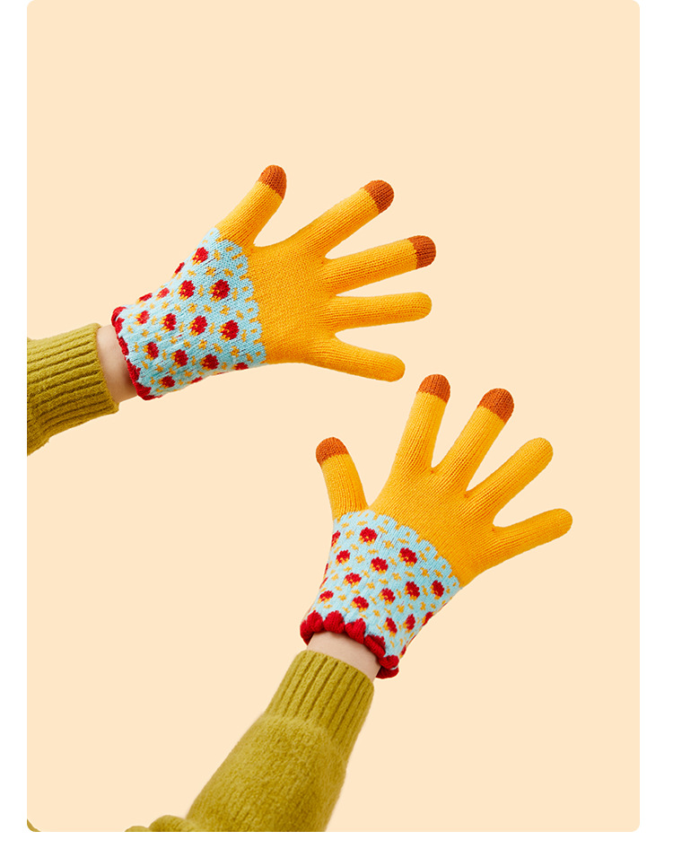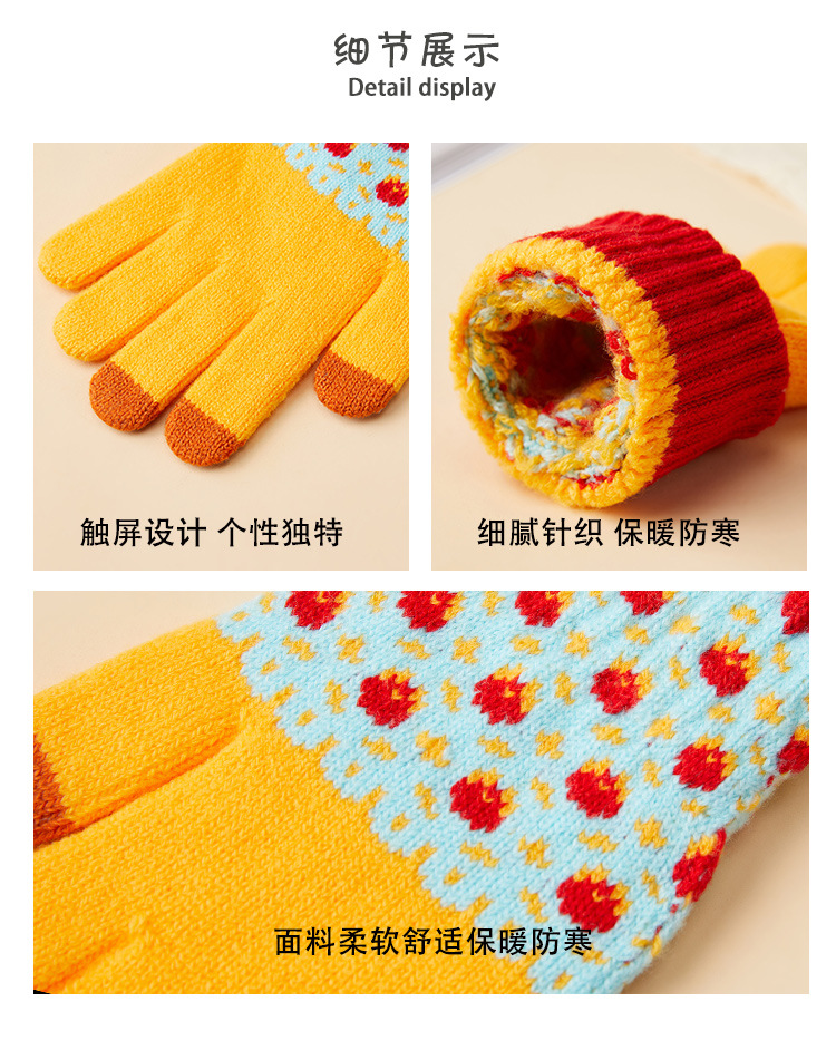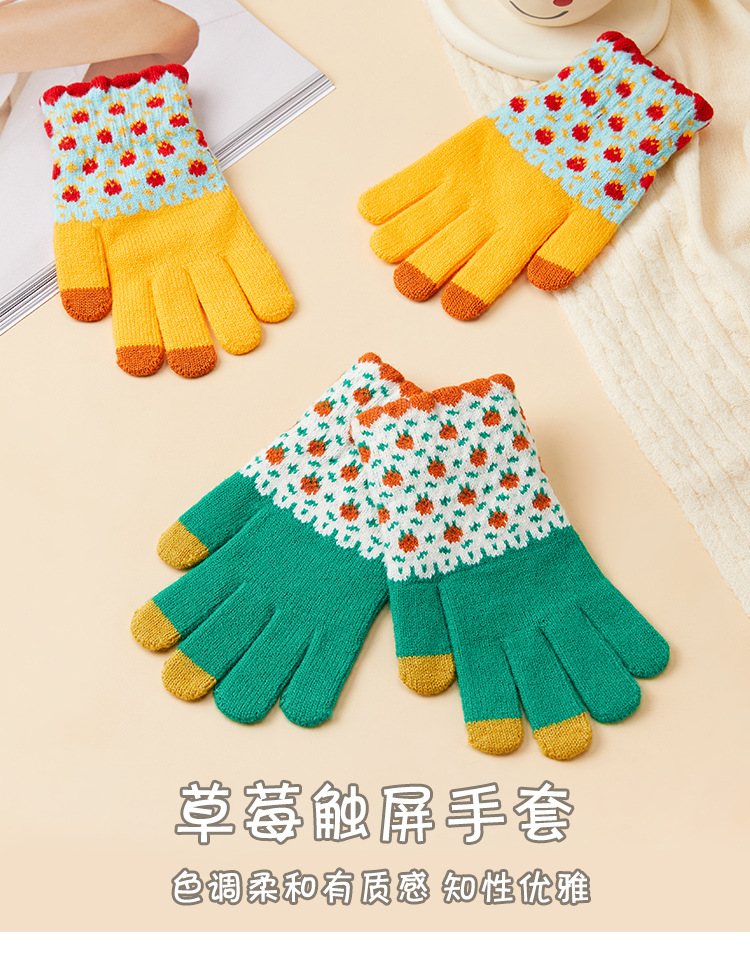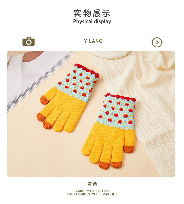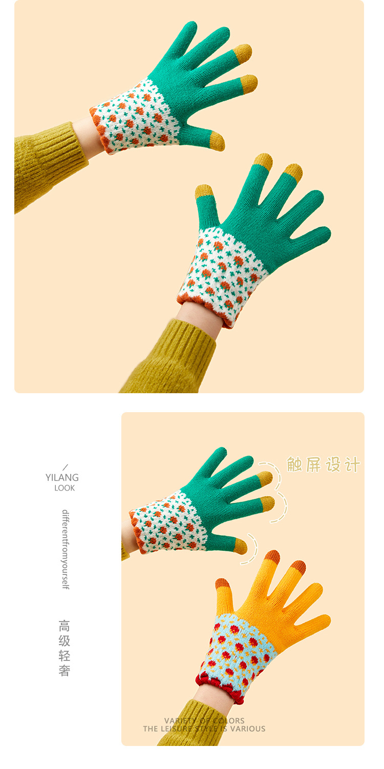 가을 겨울 여성용 두꺼운 플리스 안감 다섯 손가락 학생용 귀여운 니트 장갑 방한 자전거 타기 터치스크린 보온 한국 스타일스토어 가기