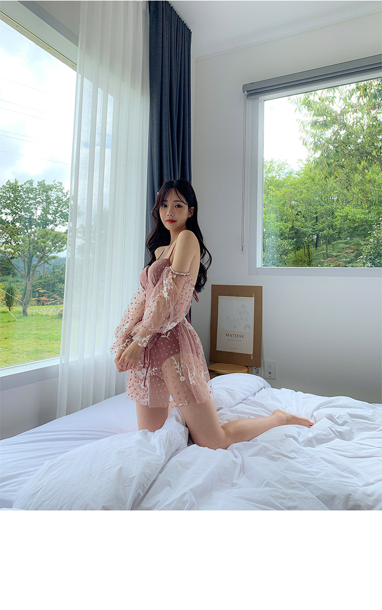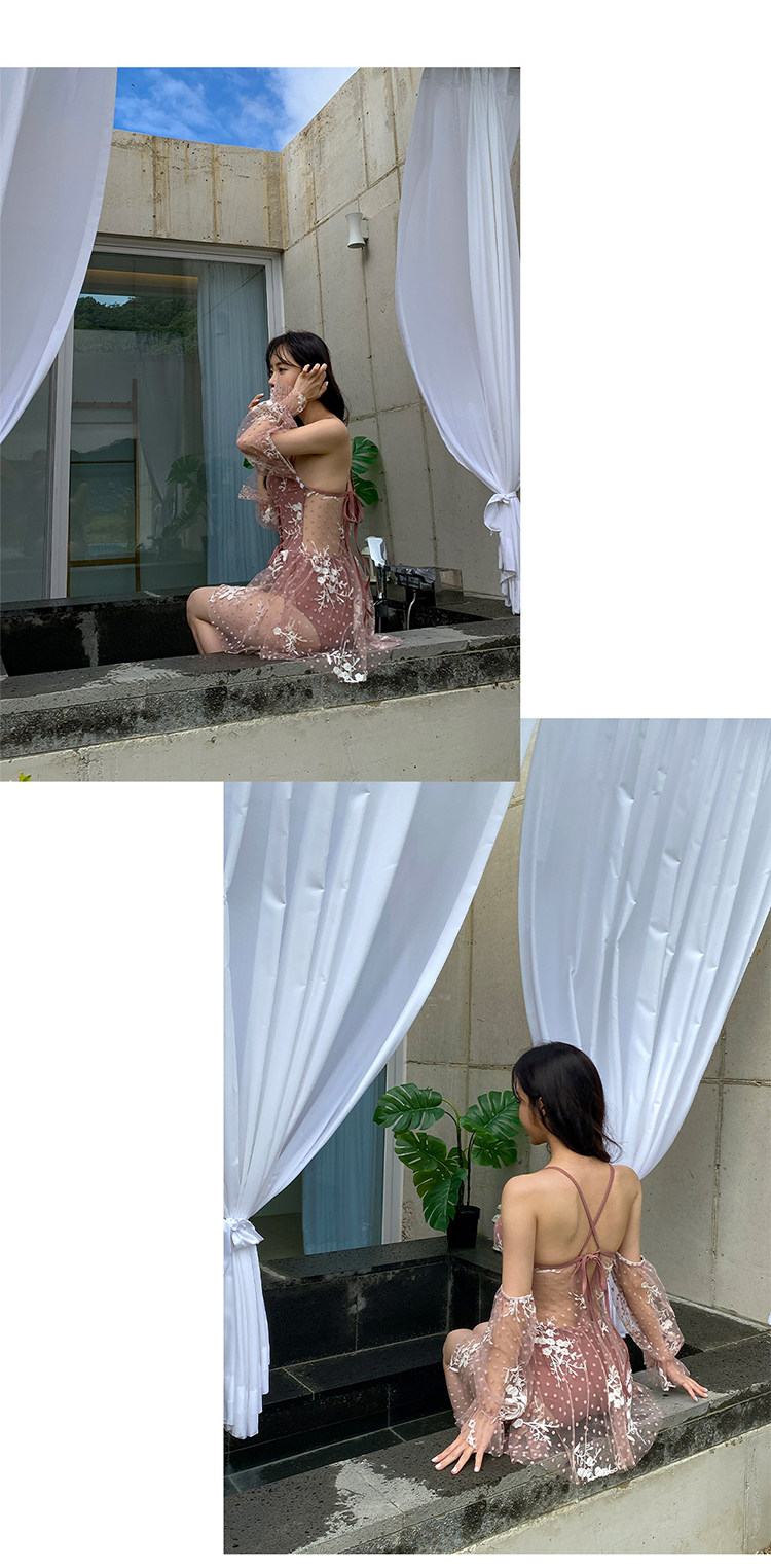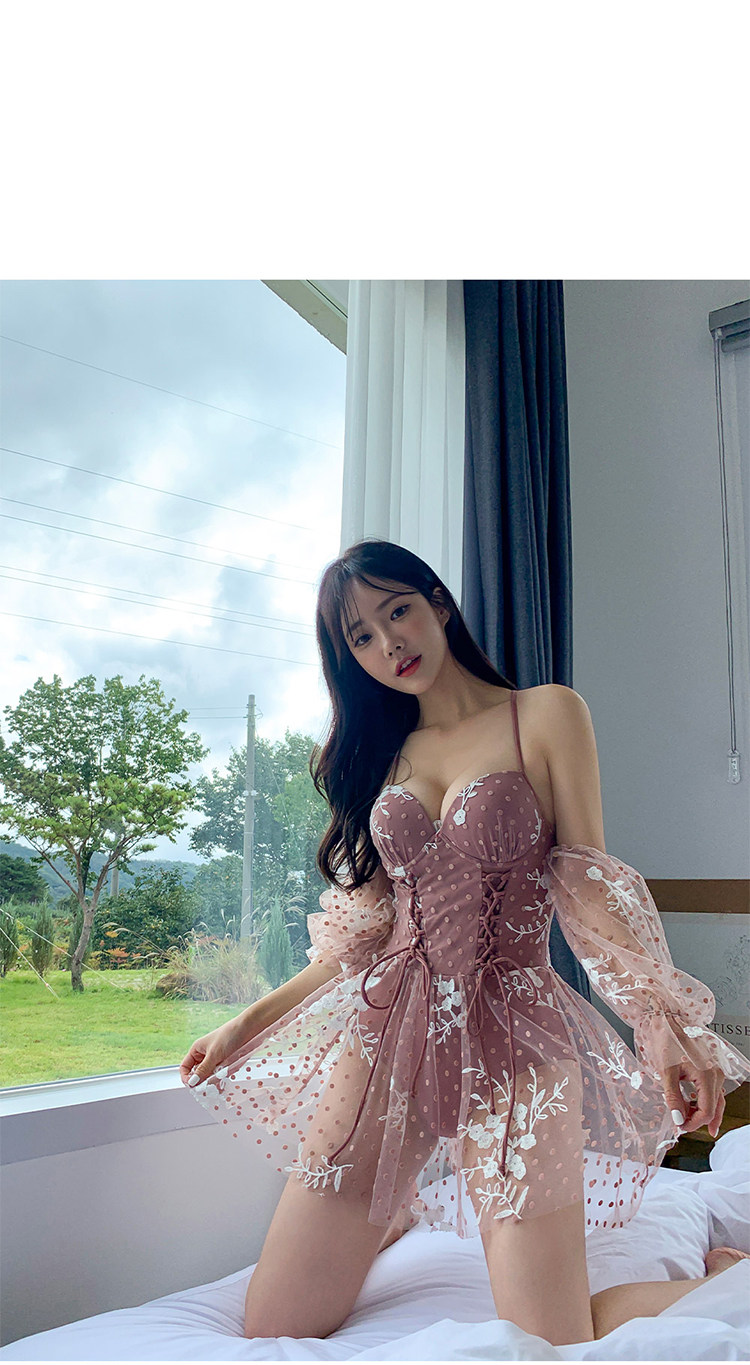 한국식 스틸 긴팔 레이스 벨트 가슴 패드 통통한 원피스 슬리밍 섹시 스커트 소녀의 큰 가슴 민소매 온천스토어 가기