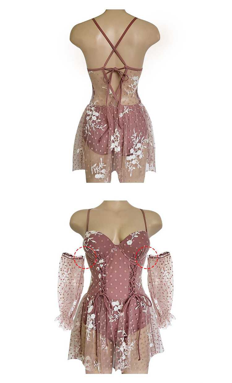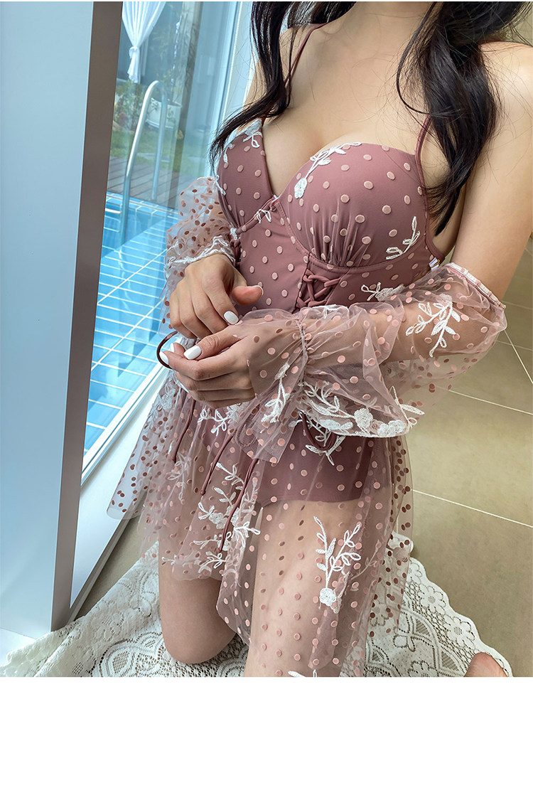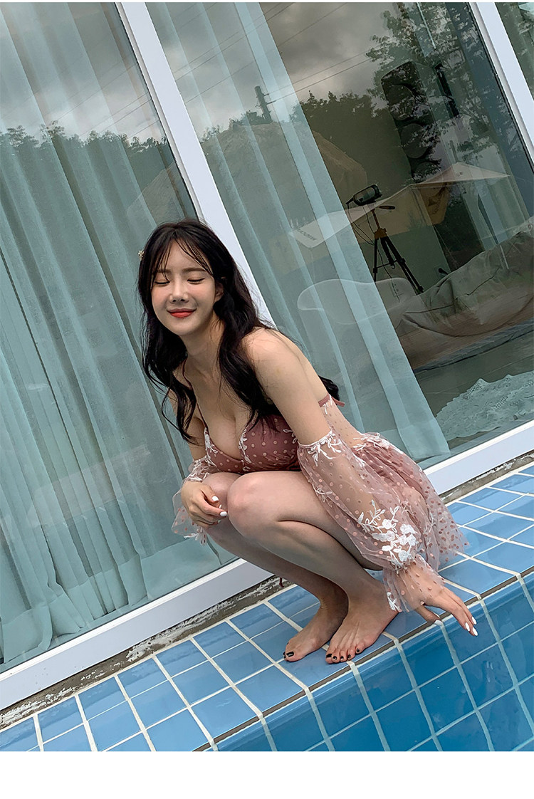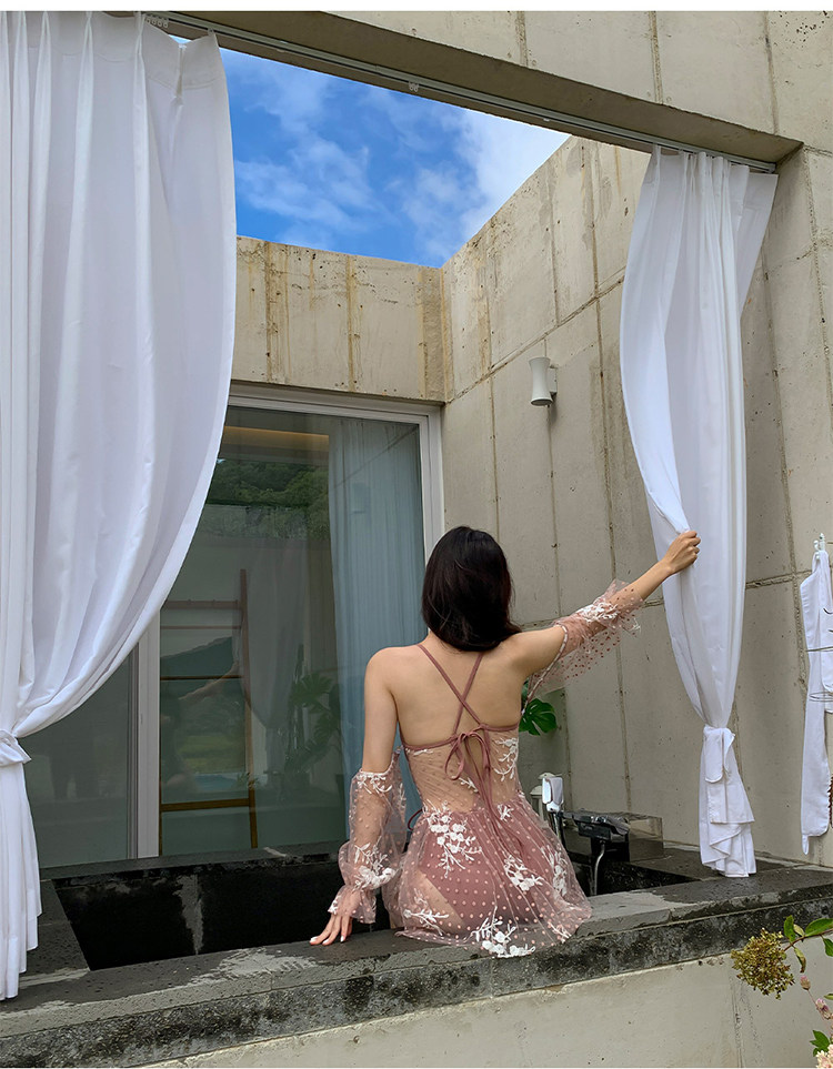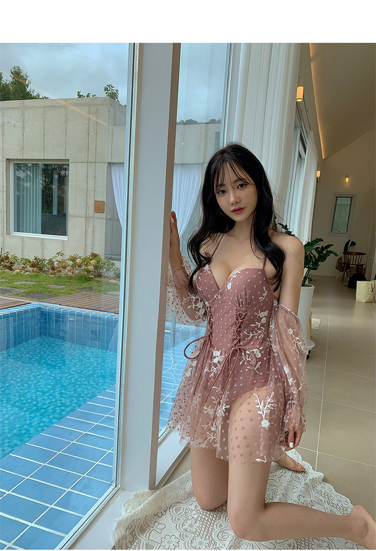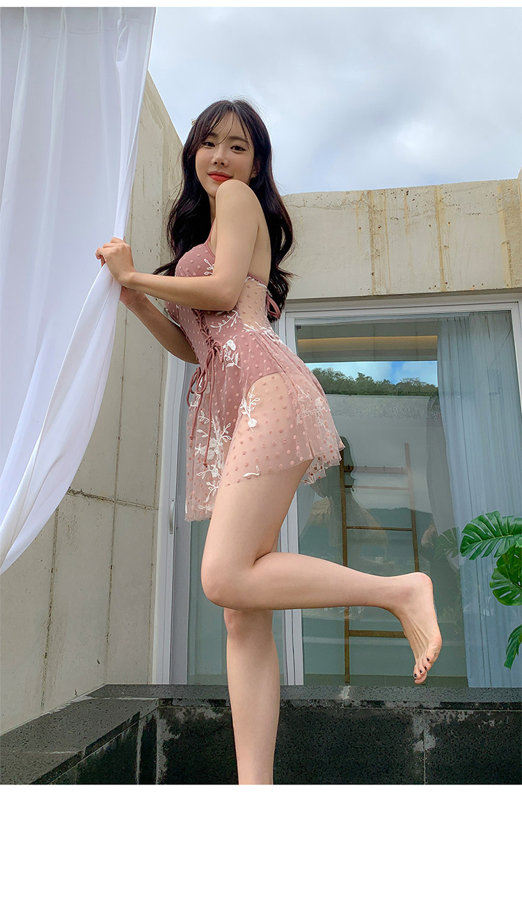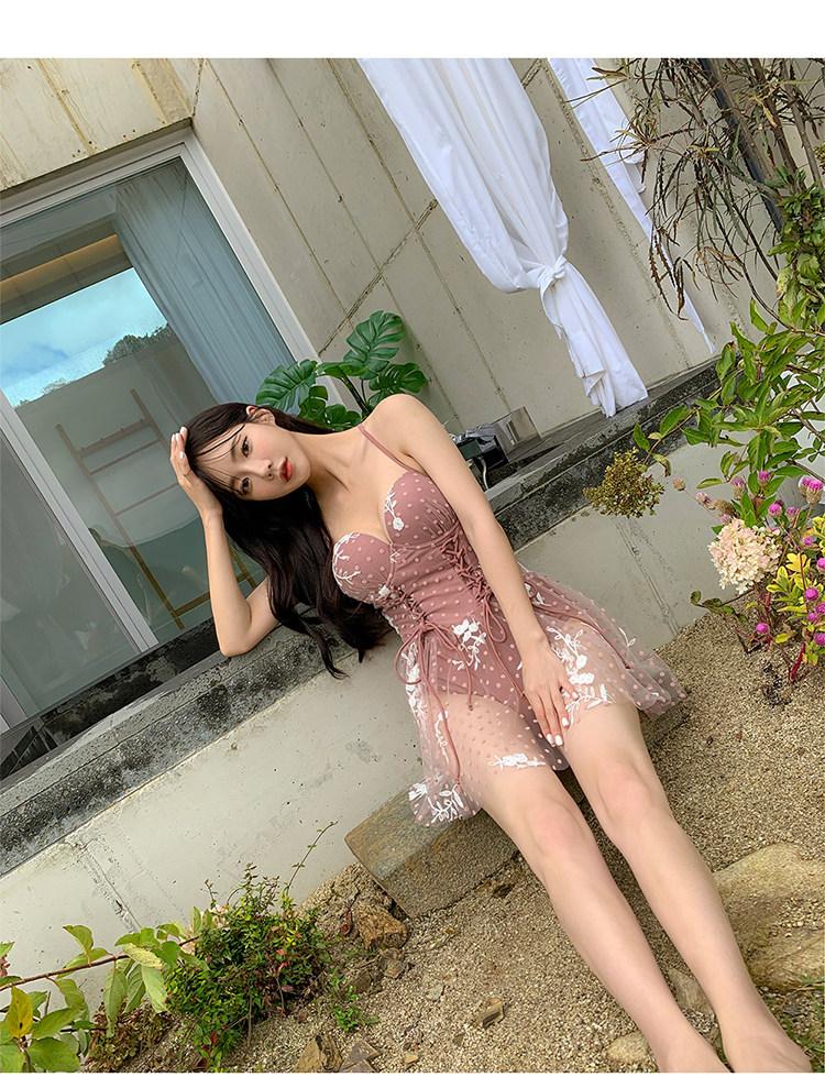 한국식 스틸 긴팔 레이스 벨트 가슴 패드 통통한 원피스 슬리밍 섹시 스커트 소녀의 큰 가슴 민소매 온천