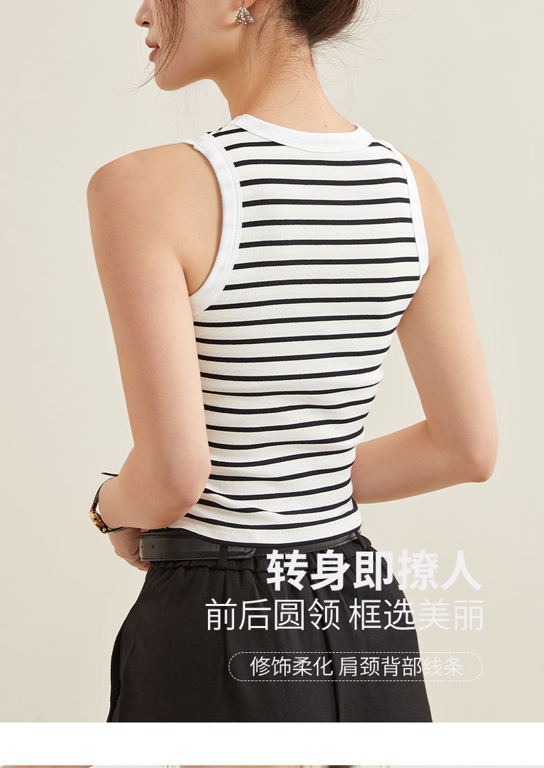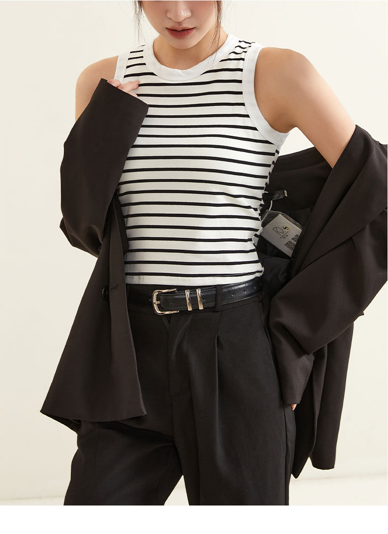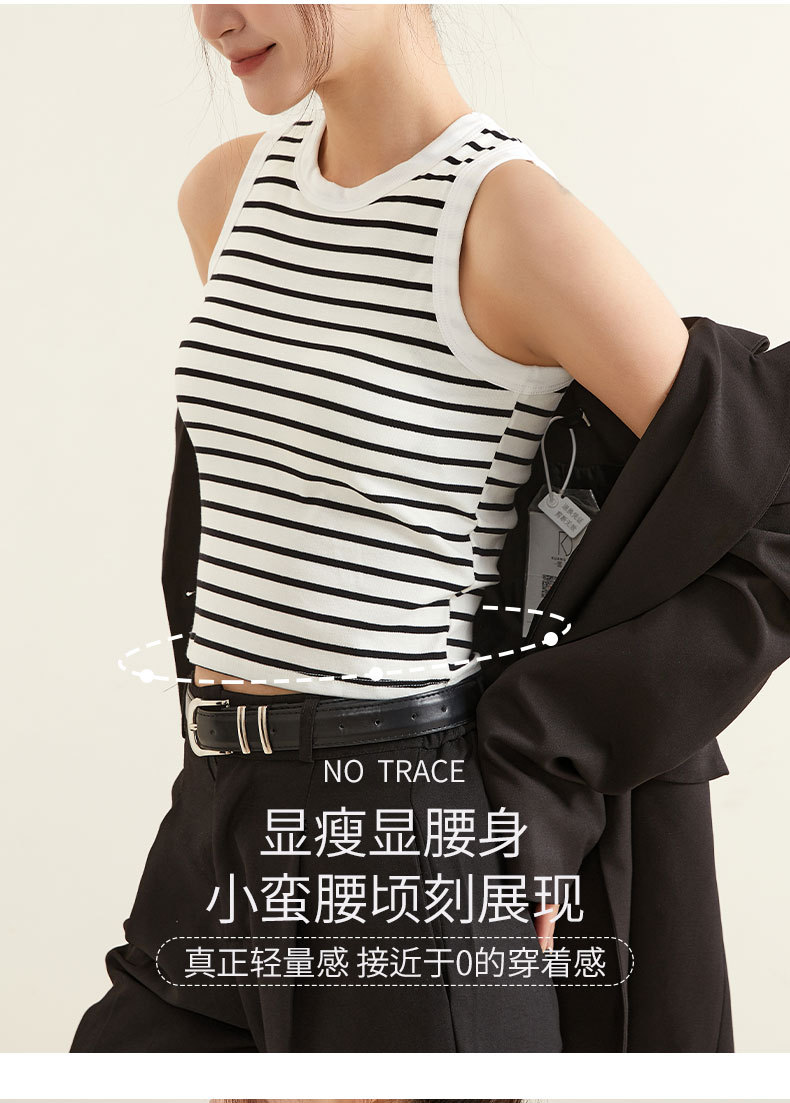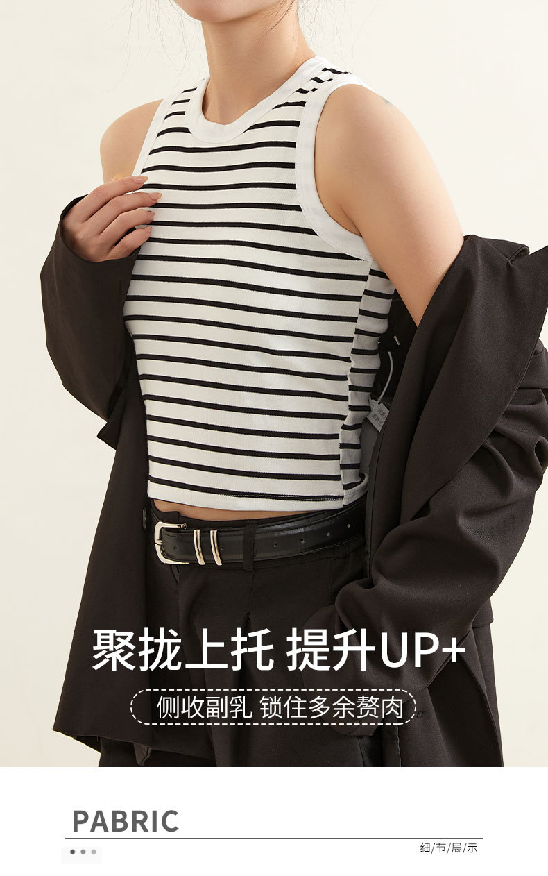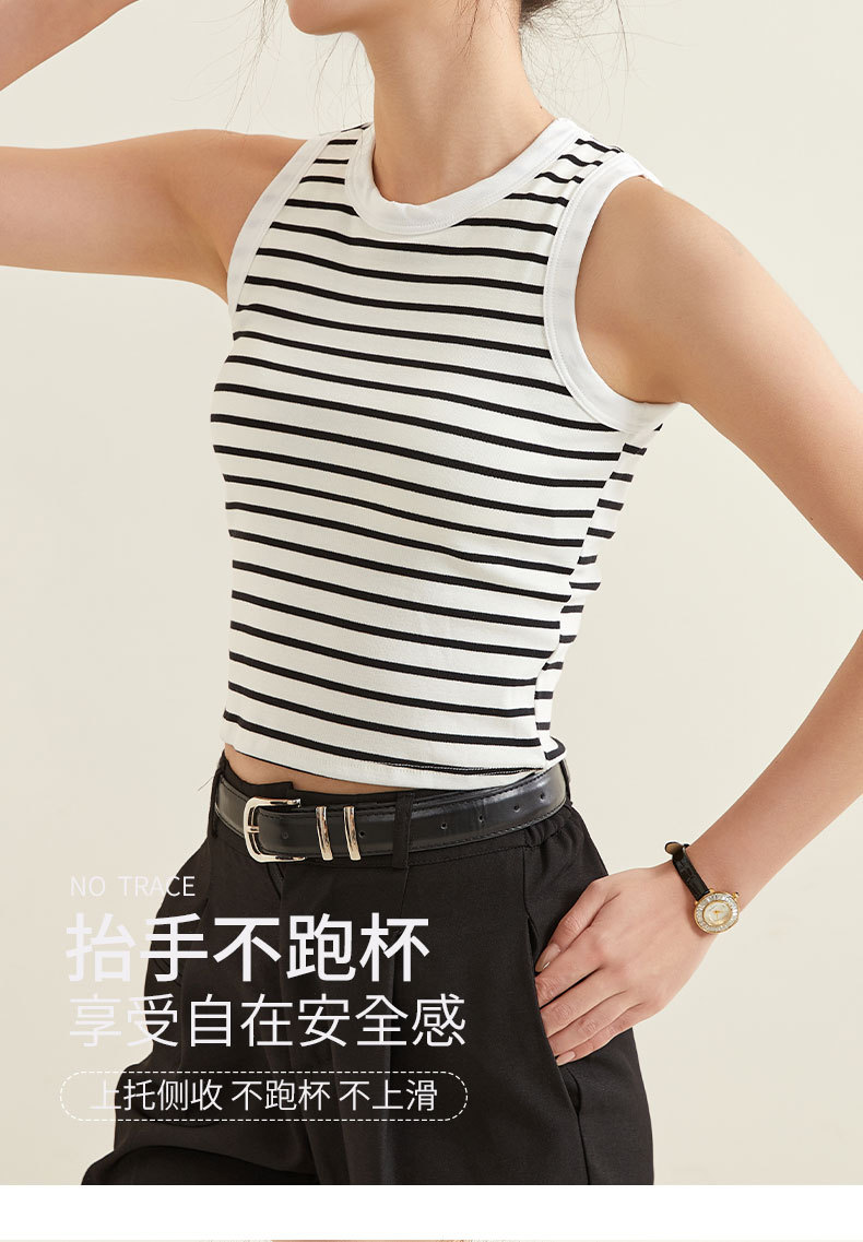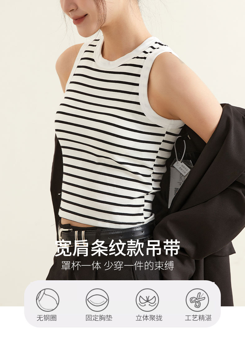 D29 여름 얇은 브래지어 컵 올인원 조끼 여성용 겉옷 스트라이프 벨트 가슴 패드 와이드 숄더 허리 짧은 조끼스토어 가기