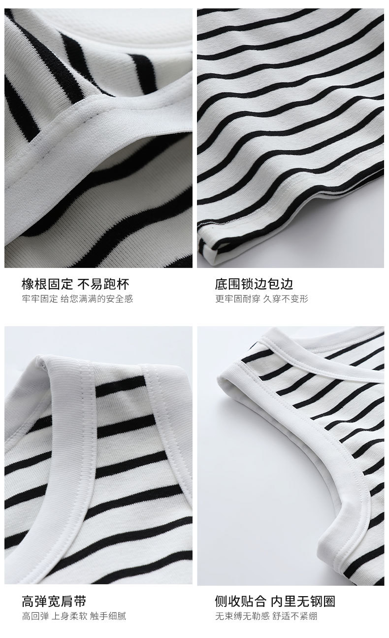 D29 여름 얇은 브래지어 컵 올인원 조끼 여성용 겉옷 스트라이프 벨트 가슴 패드 와이드 숄더 허리 짧은 조끼