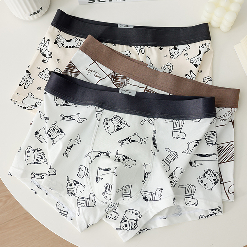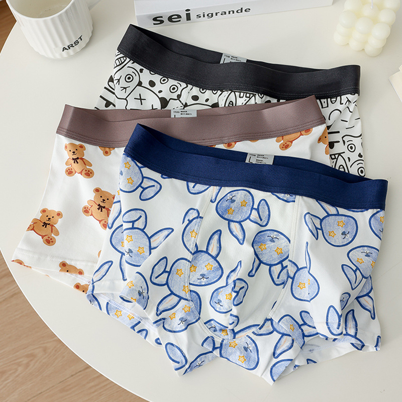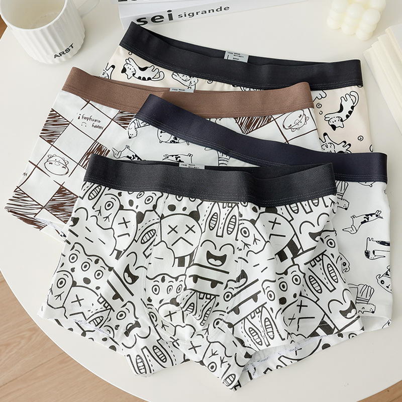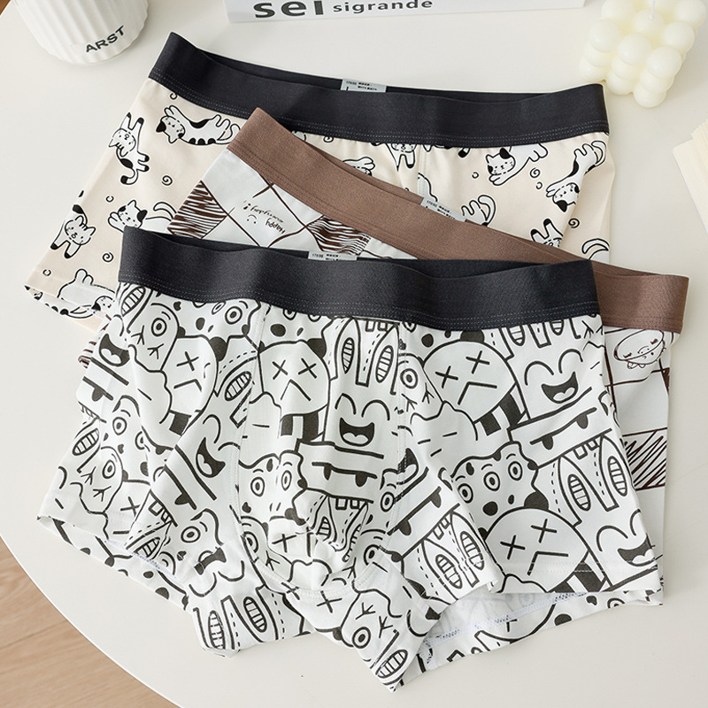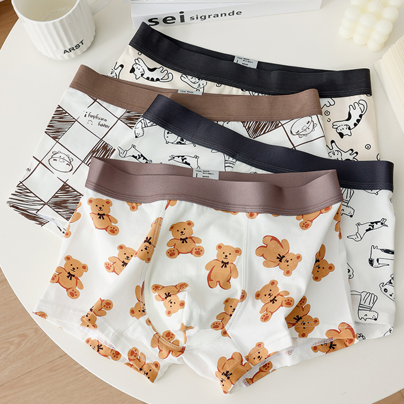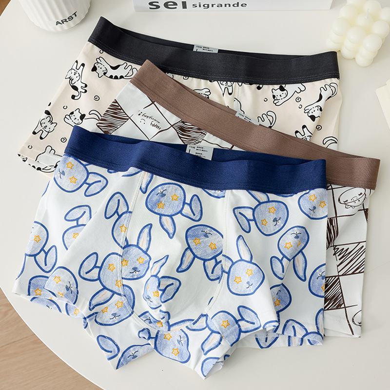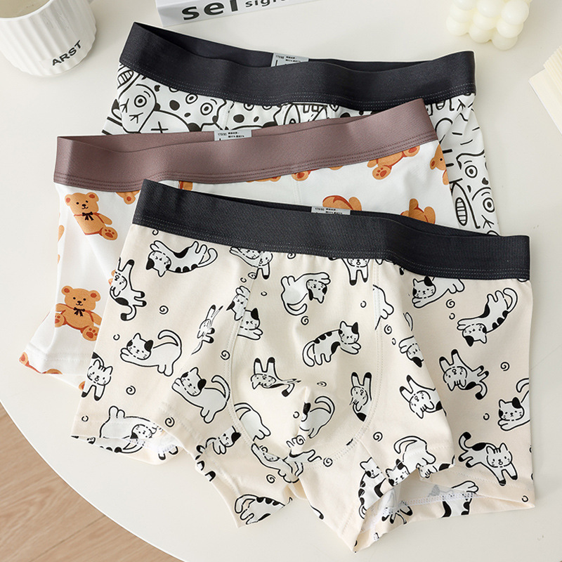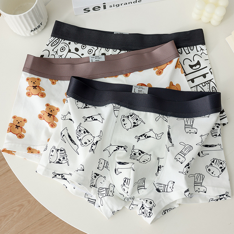 소년 복서 팬티 순수 코튼 팬티 남자 속옷 만화 인쇄 귀여운 학생 남자 복서 팬티 청소년 반바지스토어 가기