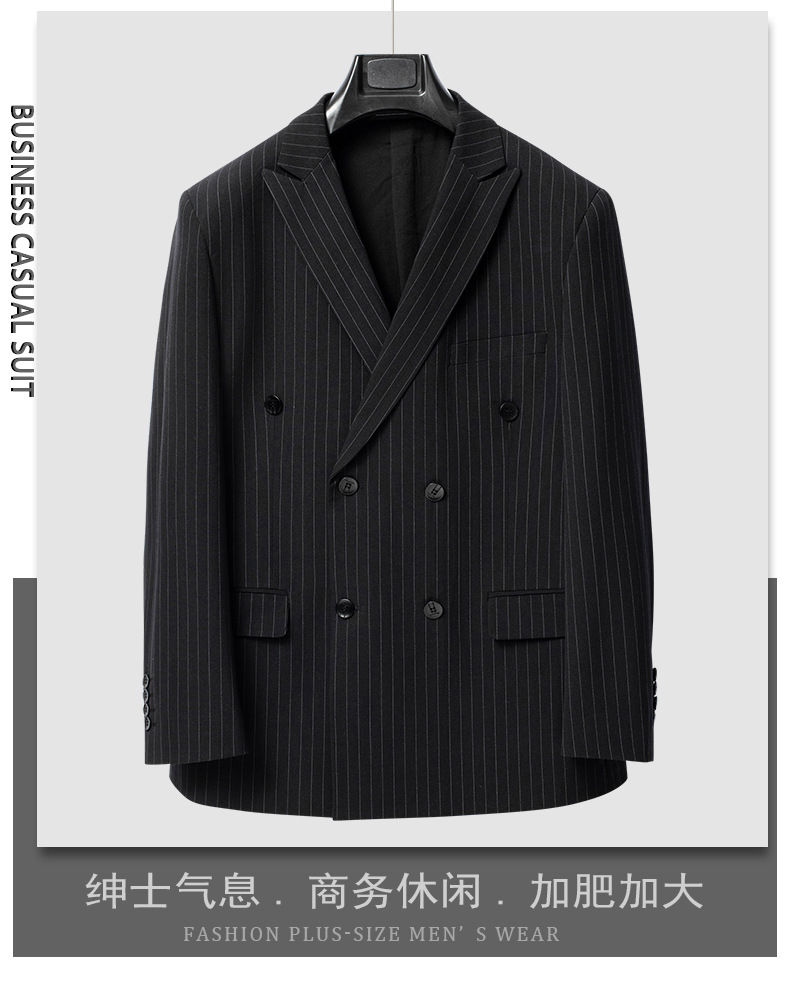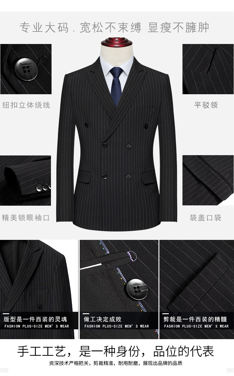 더블 브레스트 스트라이프 스트레치 세트 세트 남자의 느슨한 플러스 사이즈 플러스 사이즈 뚱뚱한 남자의 웨딩 원피스 세트 세트스토어 가기