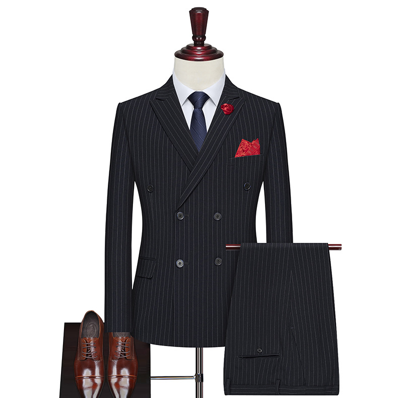더블 브레스트 스트라이프 스트레치 세트 세트 남자의 느슨한 플러스 사이즈 플러스 사이즈 뚱뚱한 남자의 웨딩 원피스 세트 세트