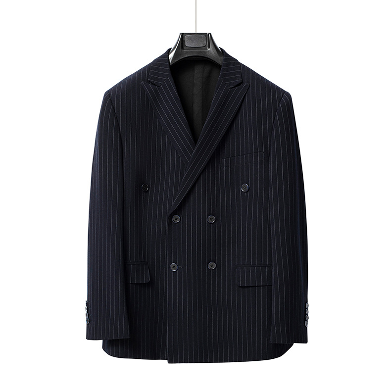 • 159 네이비 스트라이프 더블 브레스트 블레이저