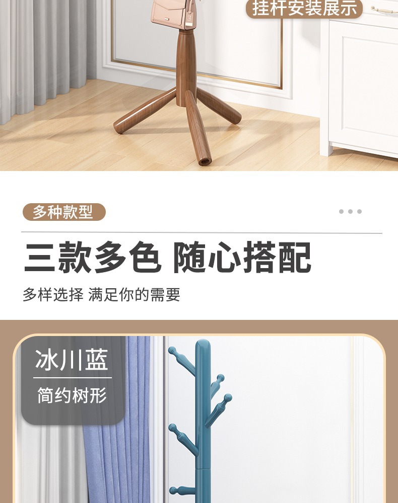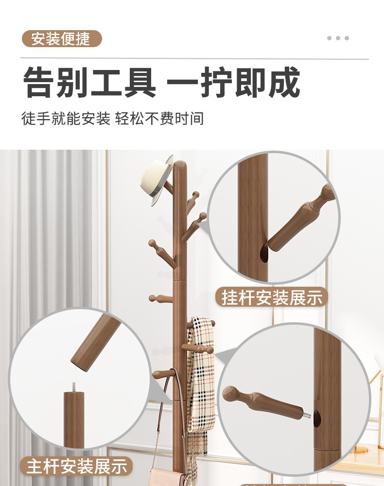단단한 나무 바닥 걸이 침실 걸이 랙은 공간을 점유하지 않습니다 가정용 코트 랙 걸이 랙 간단한 수직 막대 옷걸이스토어 가기