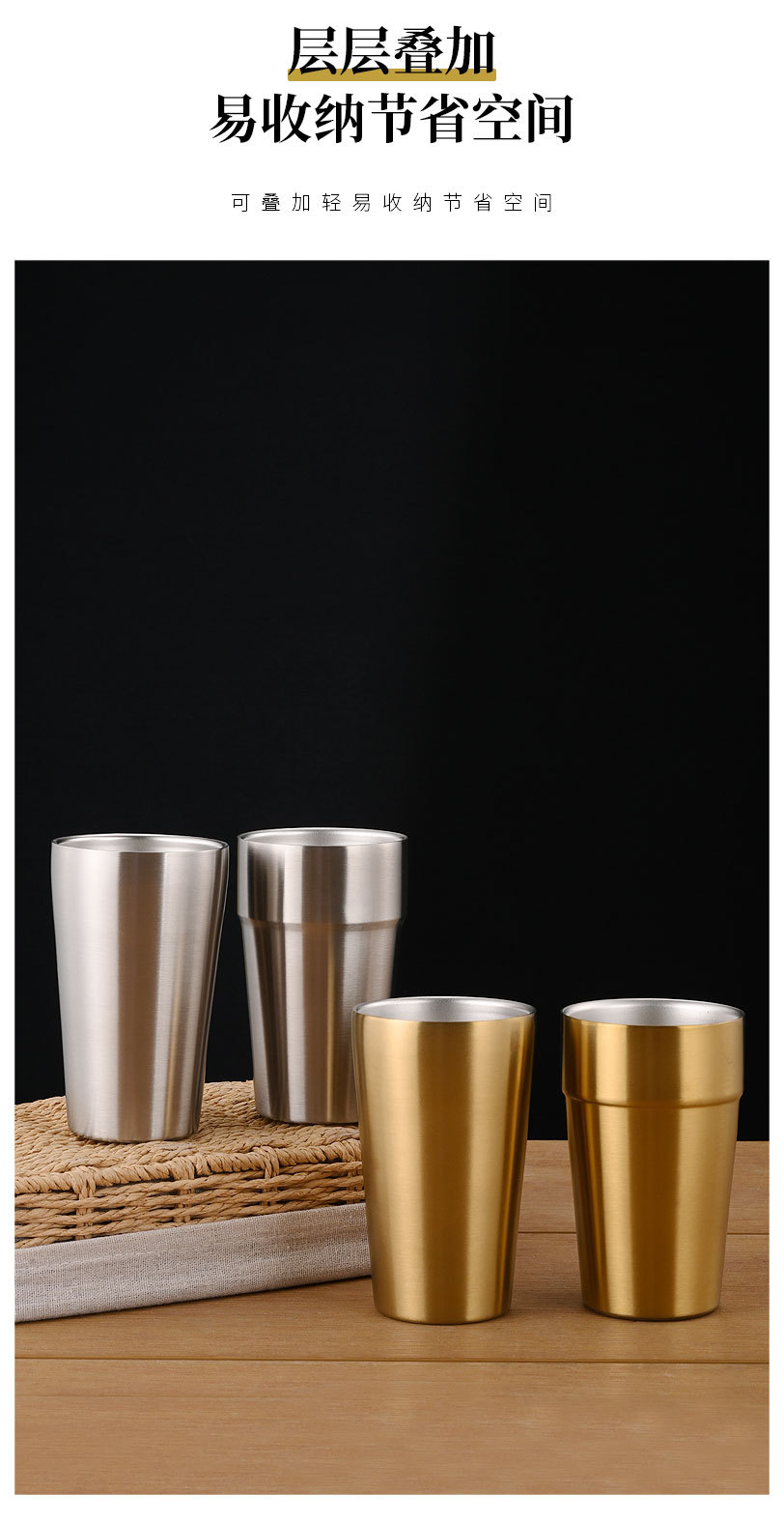 직접 공급 한국식 304 스테인레스 스틸 워터 컵 레스토랑 더블 레이어 절연 티 컵 바베큐 가게 황금 컵 맥주 컵
