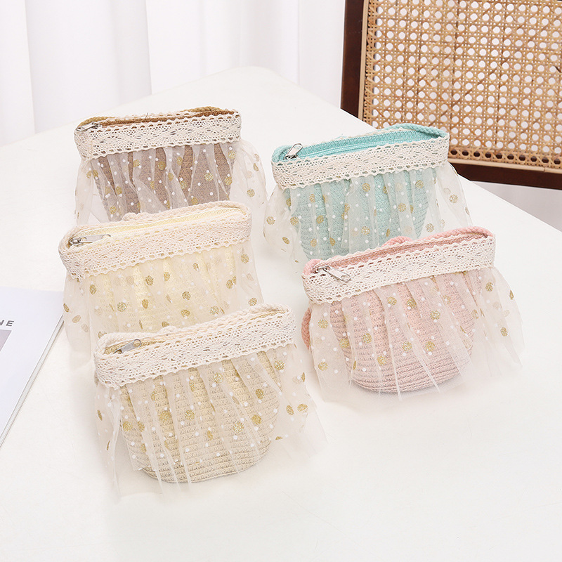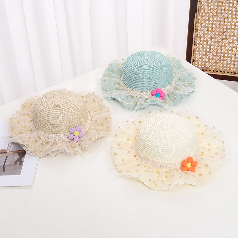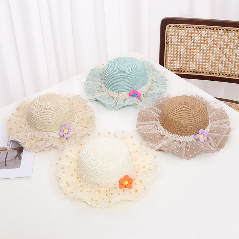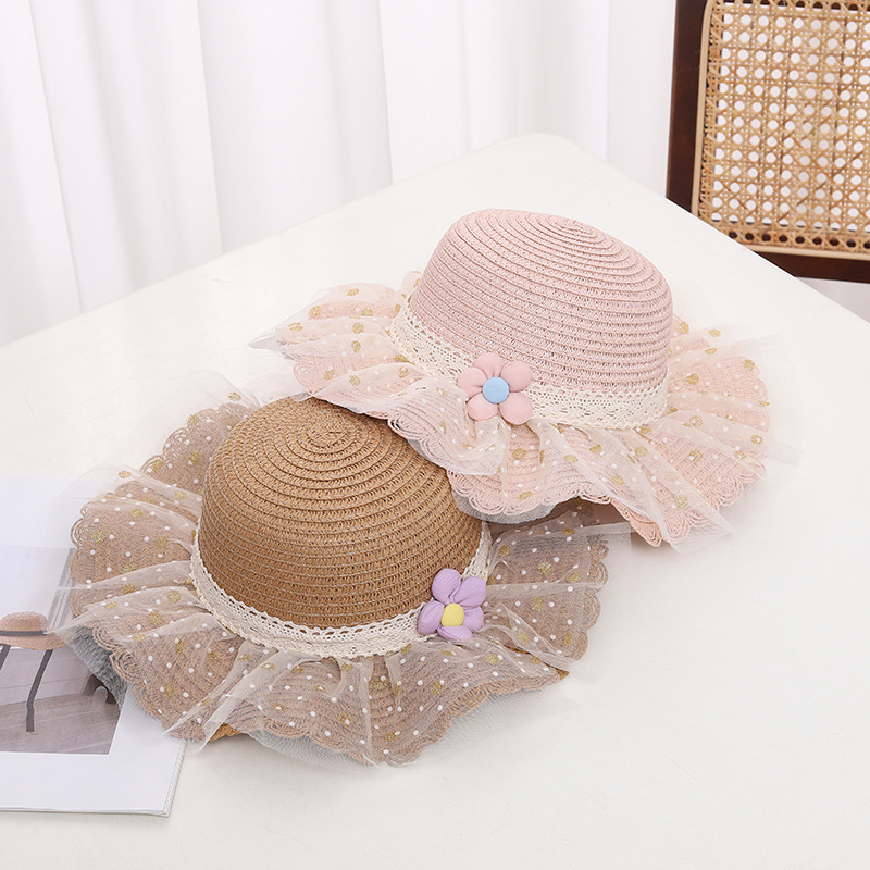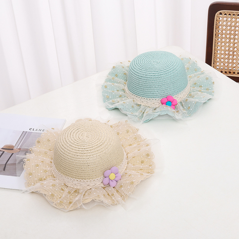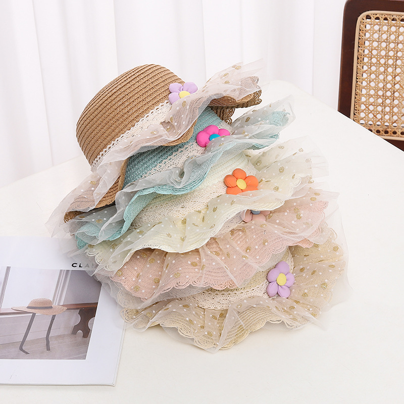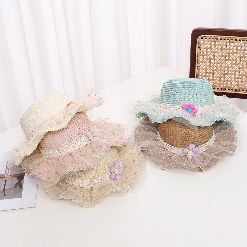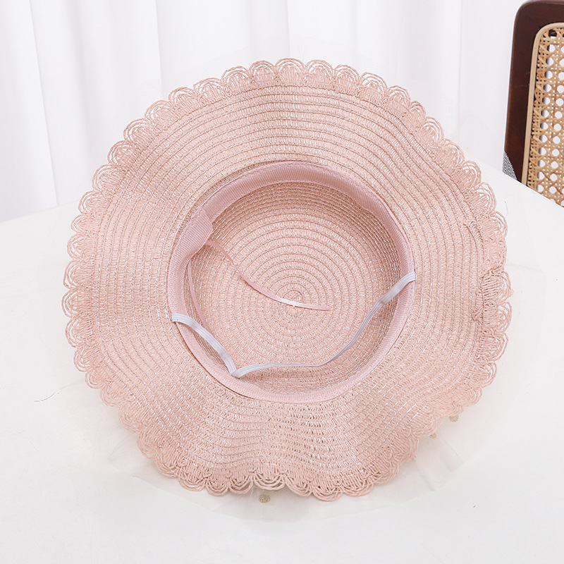 어린이 자외선 차단제 모자 여름 소녀의 차양 밀짚 모자 가방 세트 소녀 아기 소녀 세련된 레이스 공주 비치 모자스토어 가기